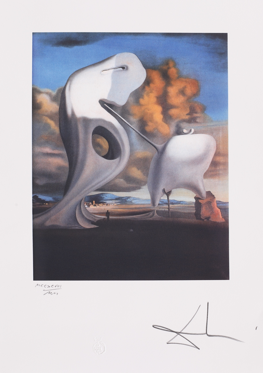 semnat dreapta jos, sub cadru, "Dali"; numerotat stânga jos, sub cadru, în creion, "MCCXCVIII/MM"; central jos, ștampila editurii,"G. Dali"