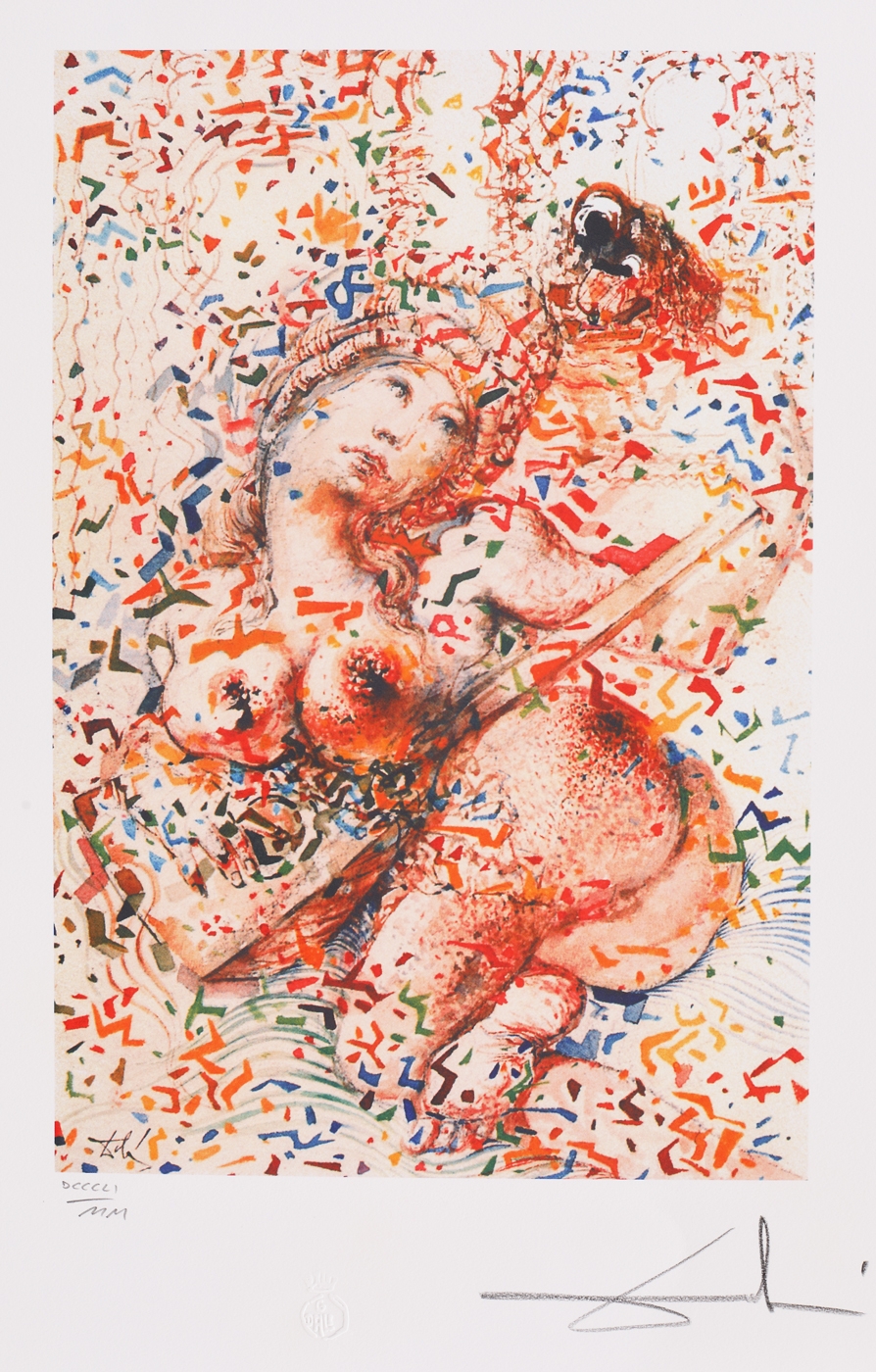 semnat dreapta jos, sub cadru, ”Dali”; numerotat stânga jos, sub cadru, în creion, ”DCCCLI/MM”; central jos, ștampila editurii, ”G. Dali”
