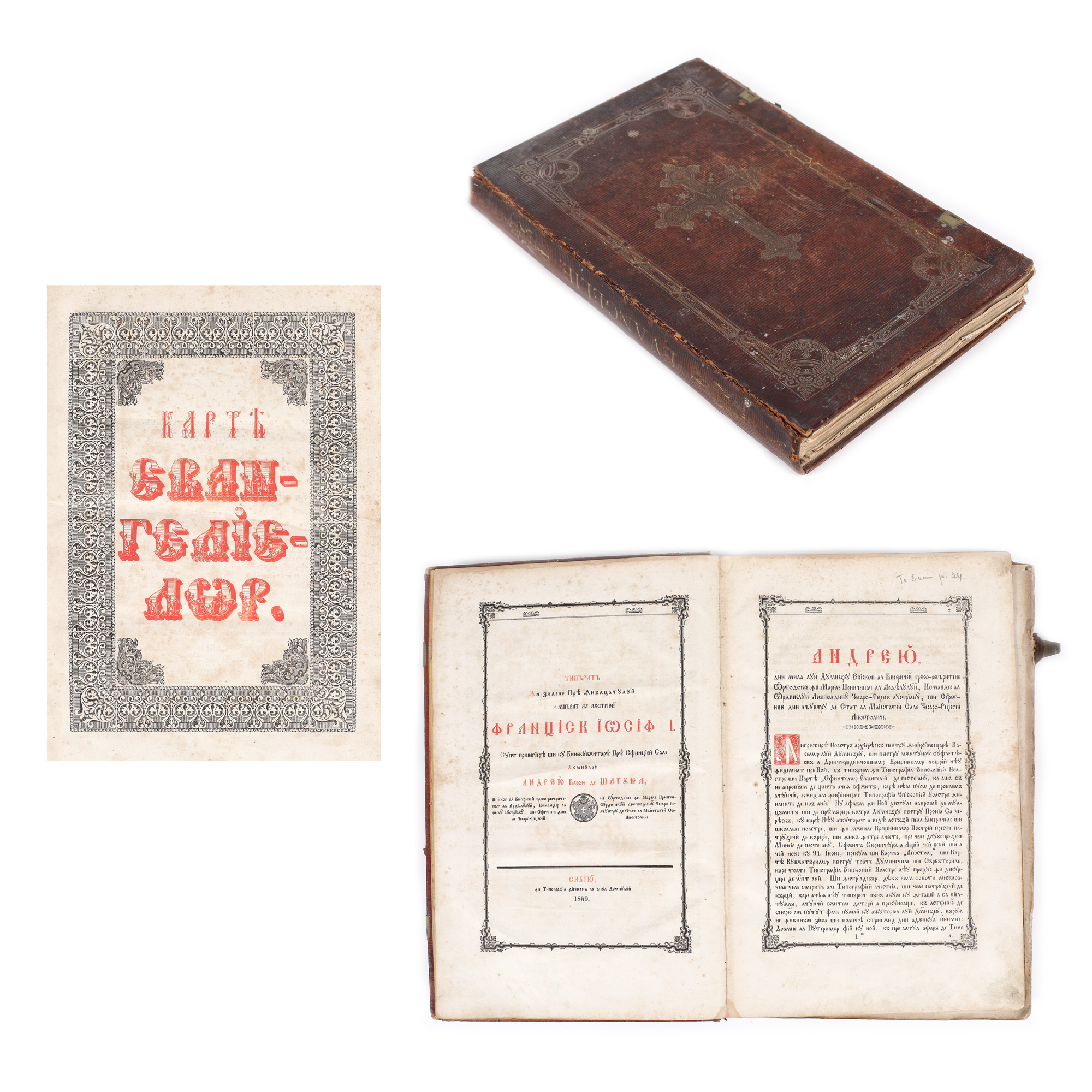 83. ”Cartea Evangheliilor”, a lui Andrei Șaguna, mitropolit ortodox al Ardealului, Sibiu, 1859, piesă rară, de colecție