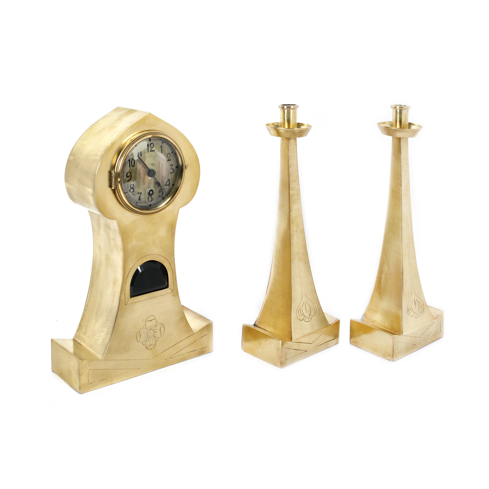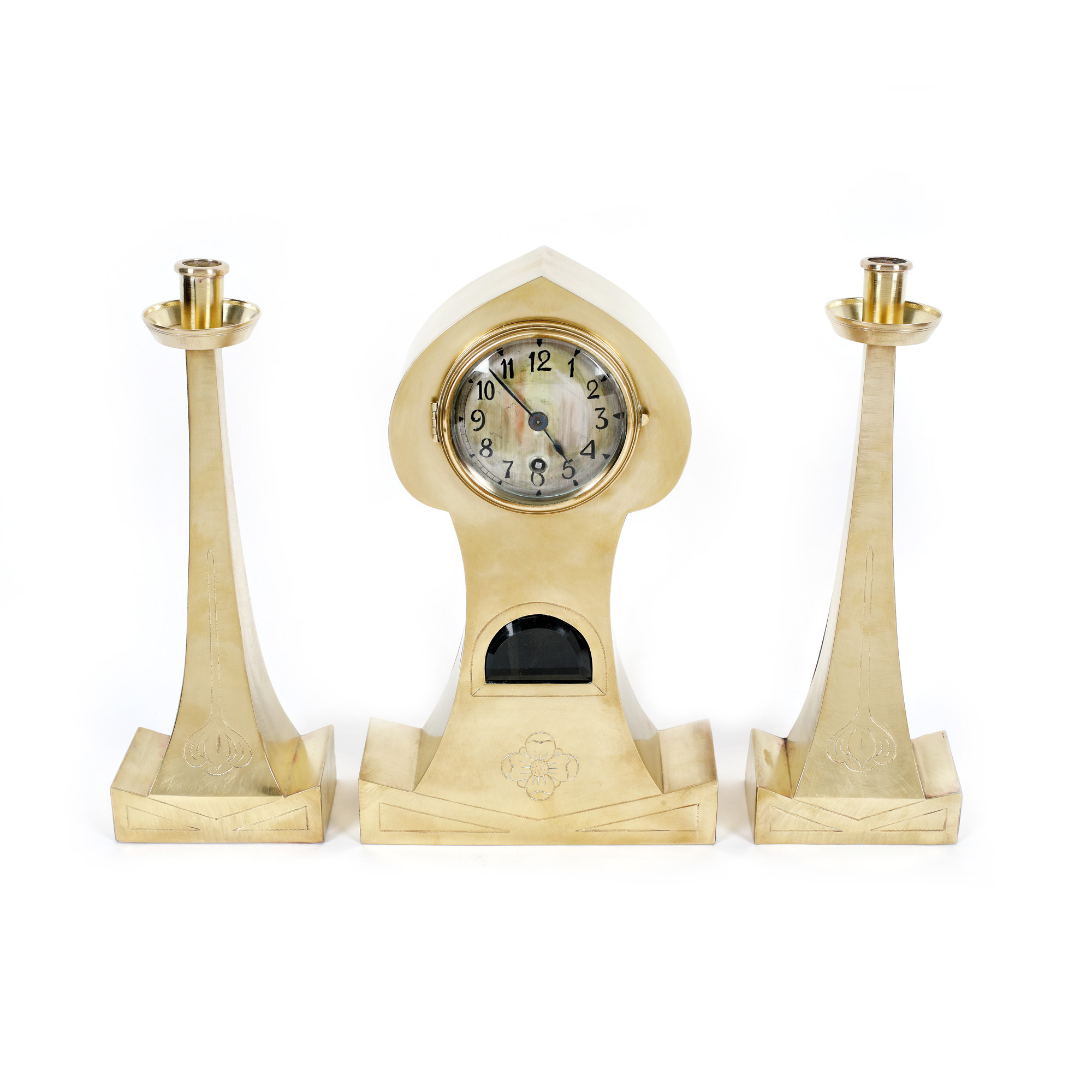 76. Ceas și pereche de sfeșnice Jugendstil, posibil design Walter Gropius pentru Kölln Hornig, cca. 1900, piesă de colecție