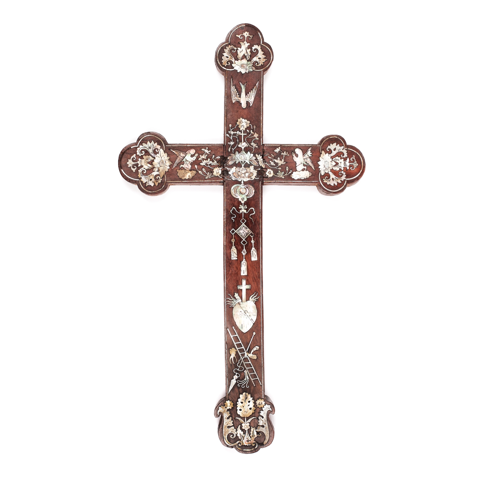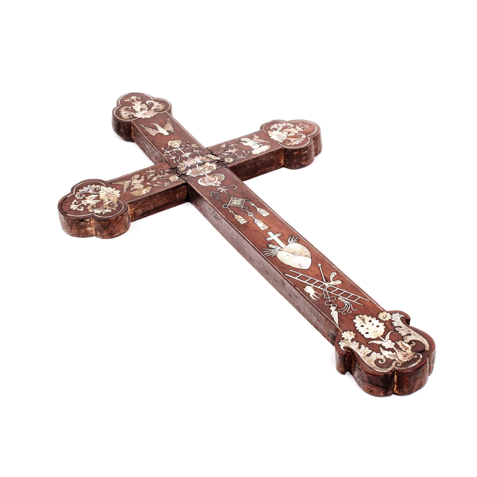 60. Cruce de mână, cu decor floral și simbolic (Sfântul Duh, patimi, îngeri), cu intarsii din sidef, sfârșitul sec. XVIII - începutul sec. XIX