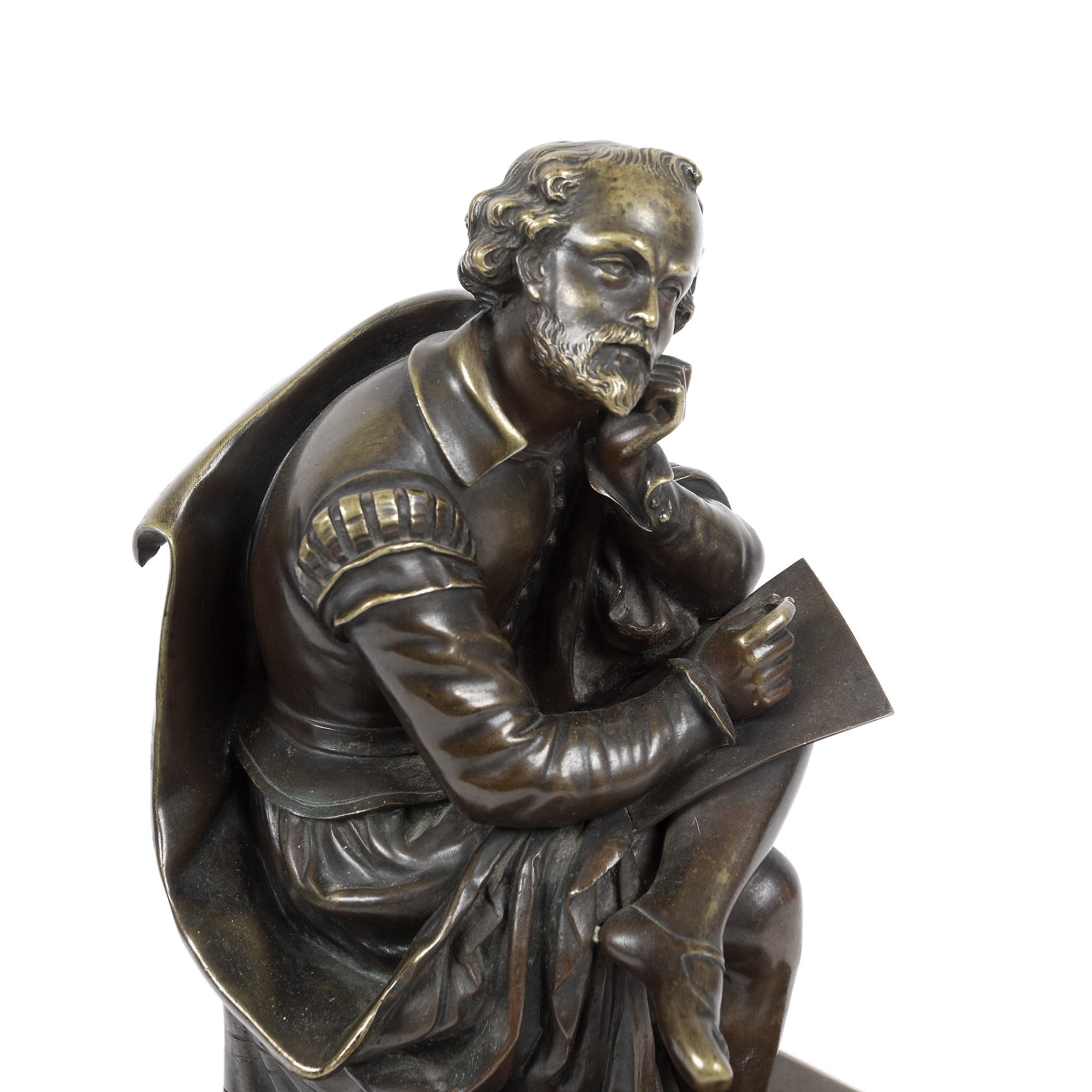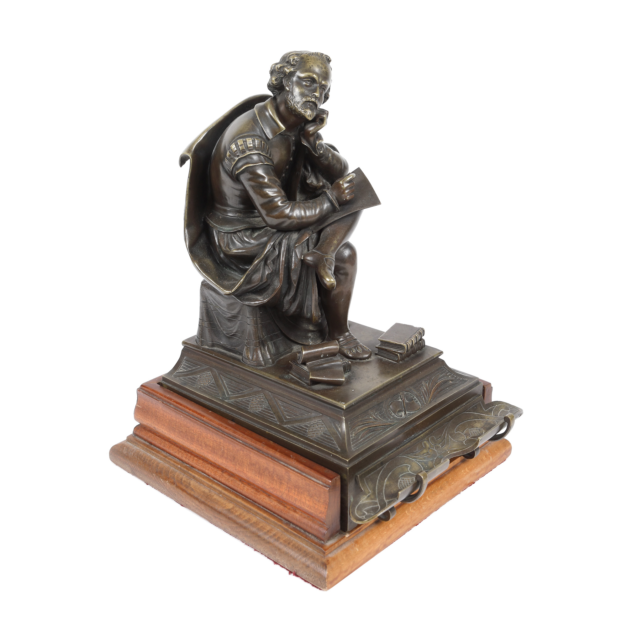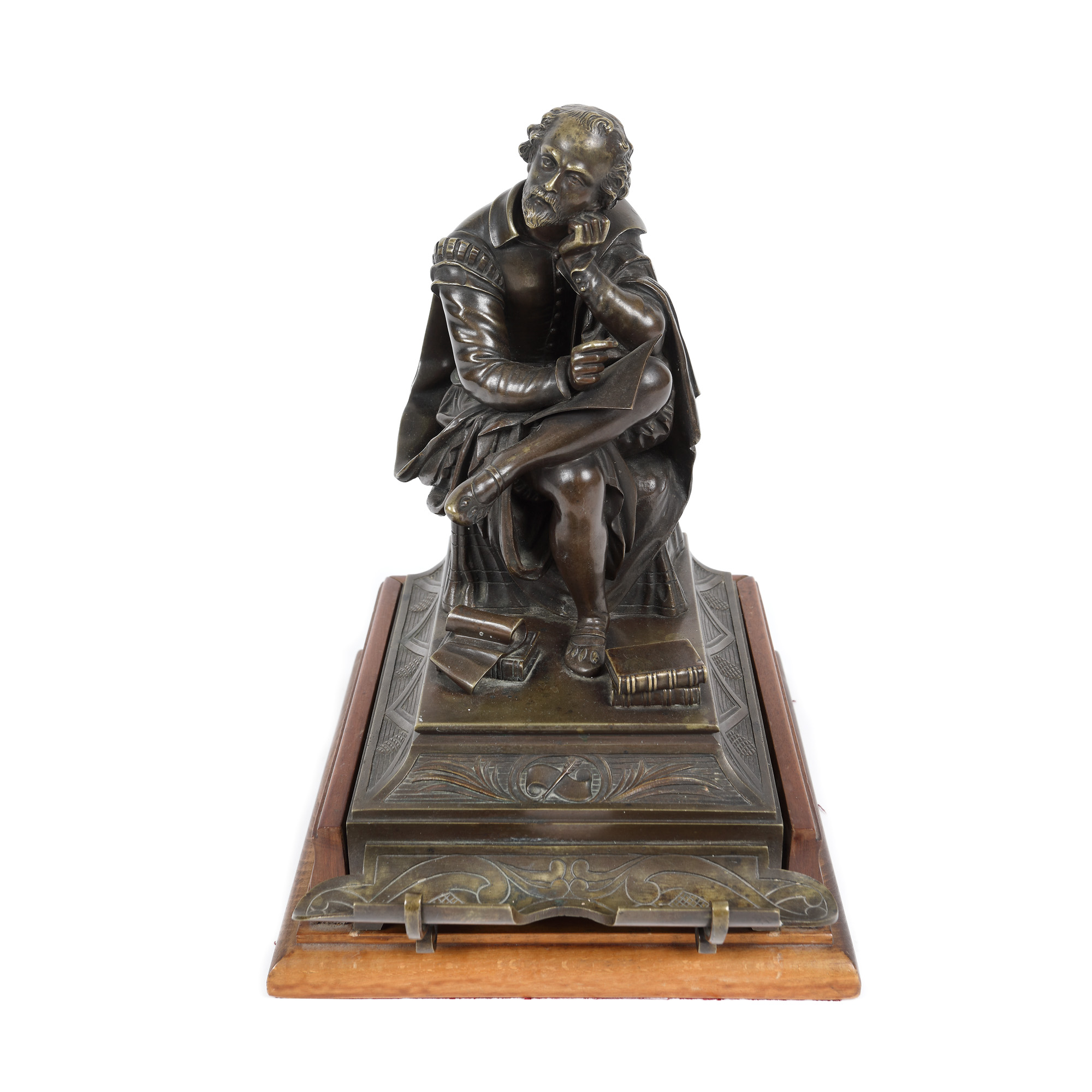 59. Suport decorativ din bronz, pentru instrumente de scris, cu sonerie, decorat cu statuetă ronde-bosse, cca. 1900