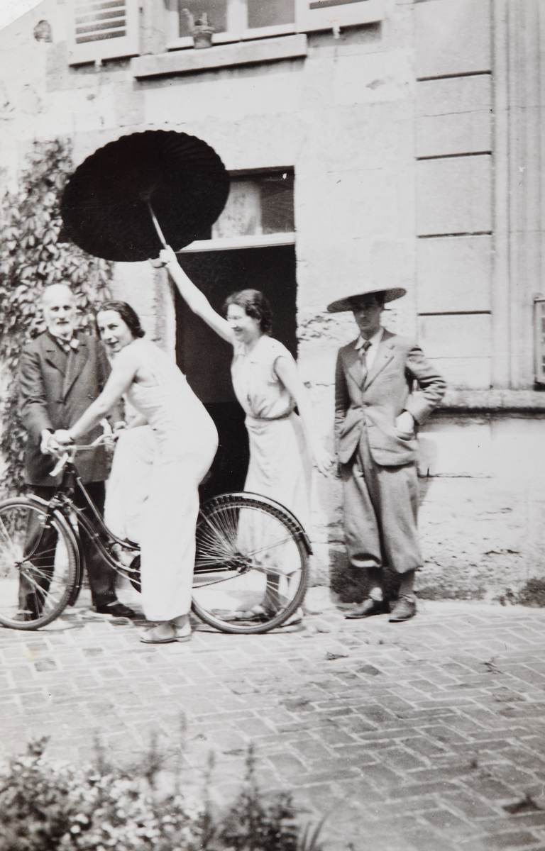 39. Fotografie inedită înfățișându-i pe Theodor Pallady și Ninette Schapira pe bicicletă, anii 1940