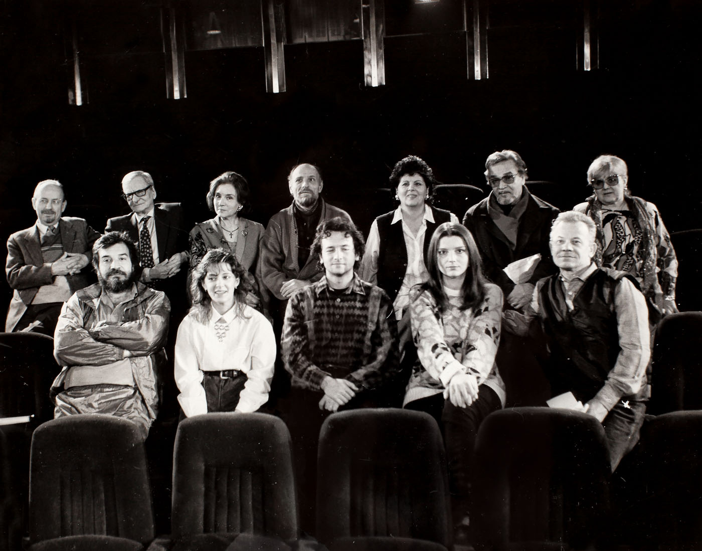 145. Fotografie reprezentându-l pe Radu Beligan alături de colegii săi (Valentin Uritescu, Adela Mărculescu, Damian Crâșmaru etc.), provine din colecția actorului Radu Beligan