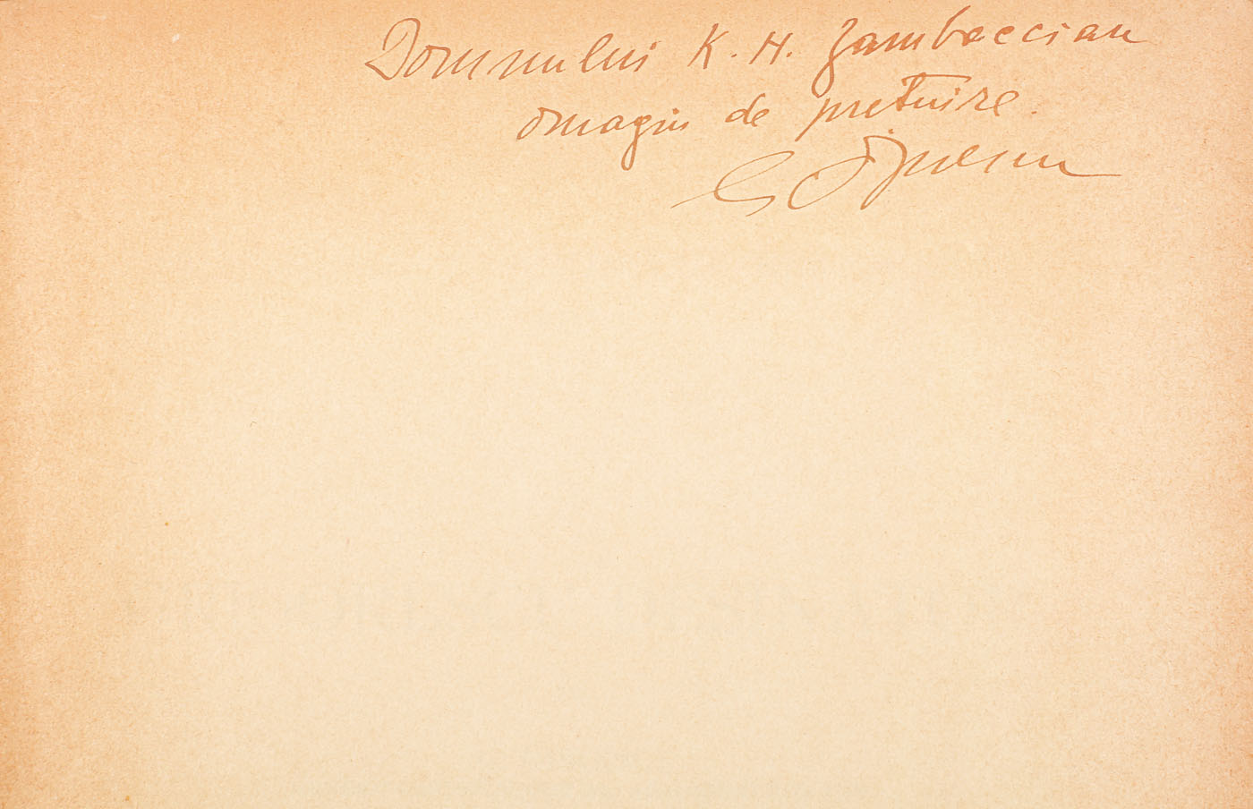 48. ”Grigorescu desinator”, de G. Oprescu, București, 1941, cu dedicația autorului către Krikor H. Zambaccian