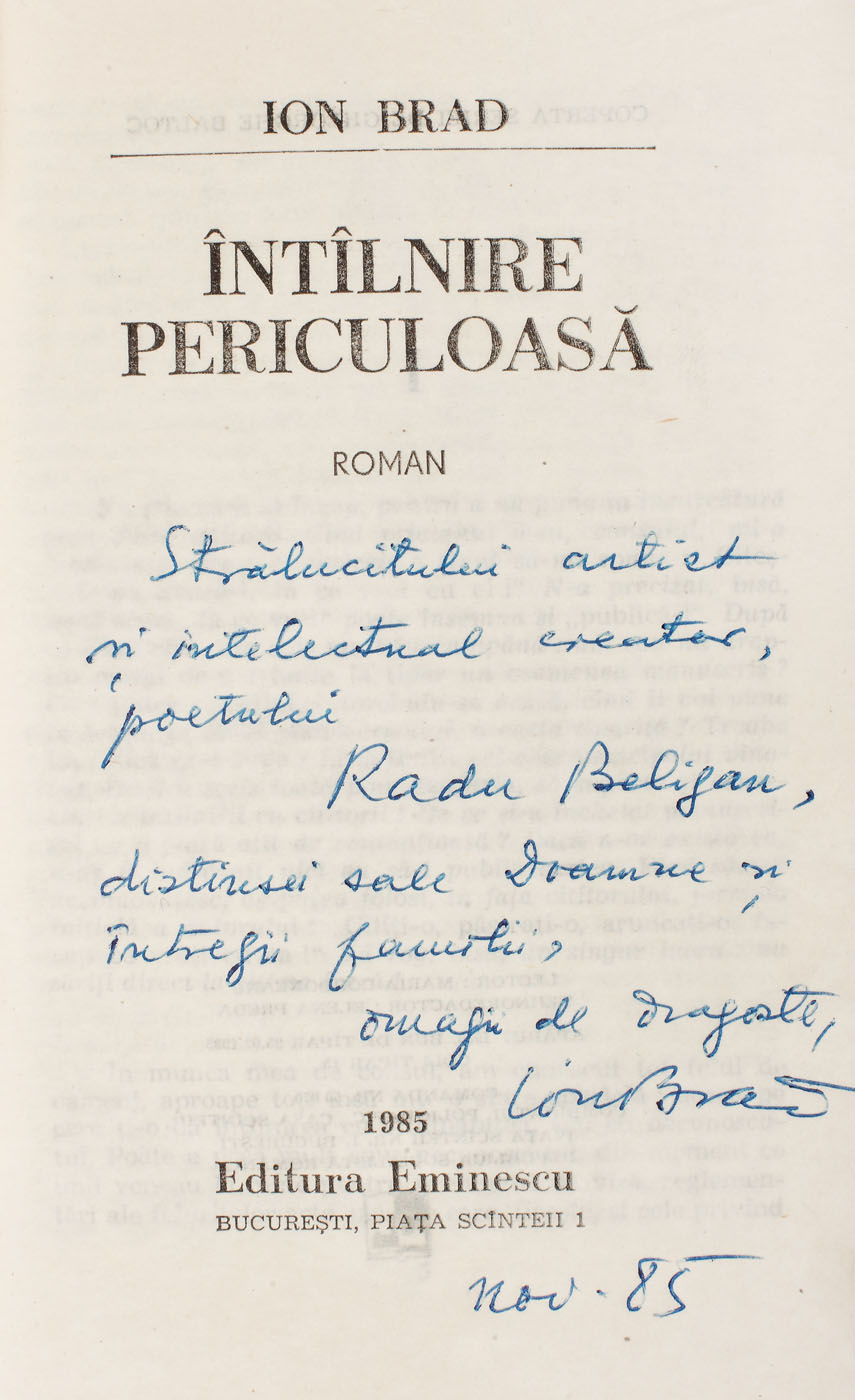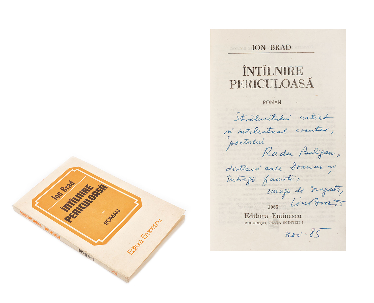 162. ”Întâlnire periculoasă”, de Ion Brad, București, 1985, cu dedicația autorului către Radu Beligan, provine din colecția actorului