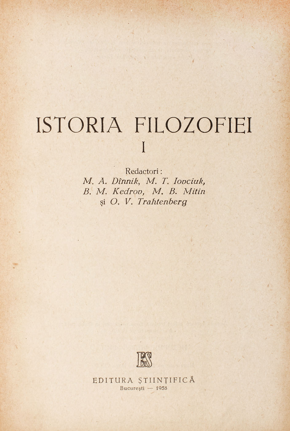 152. "Istoria filozofiei", toate volumele, București, 1958, provin din colecția actorului Radu Beligan