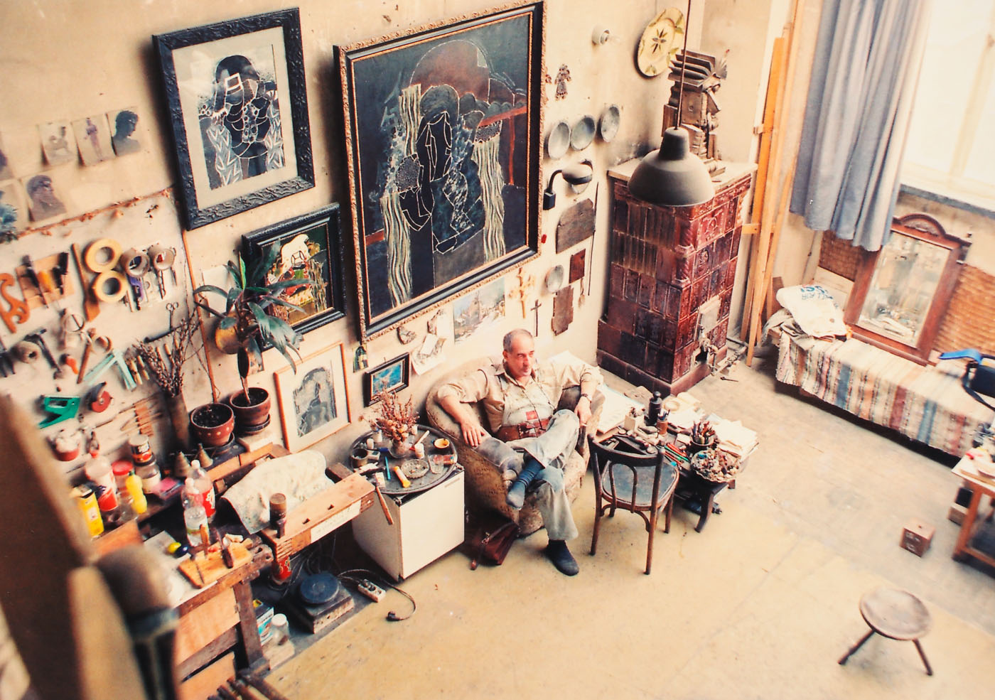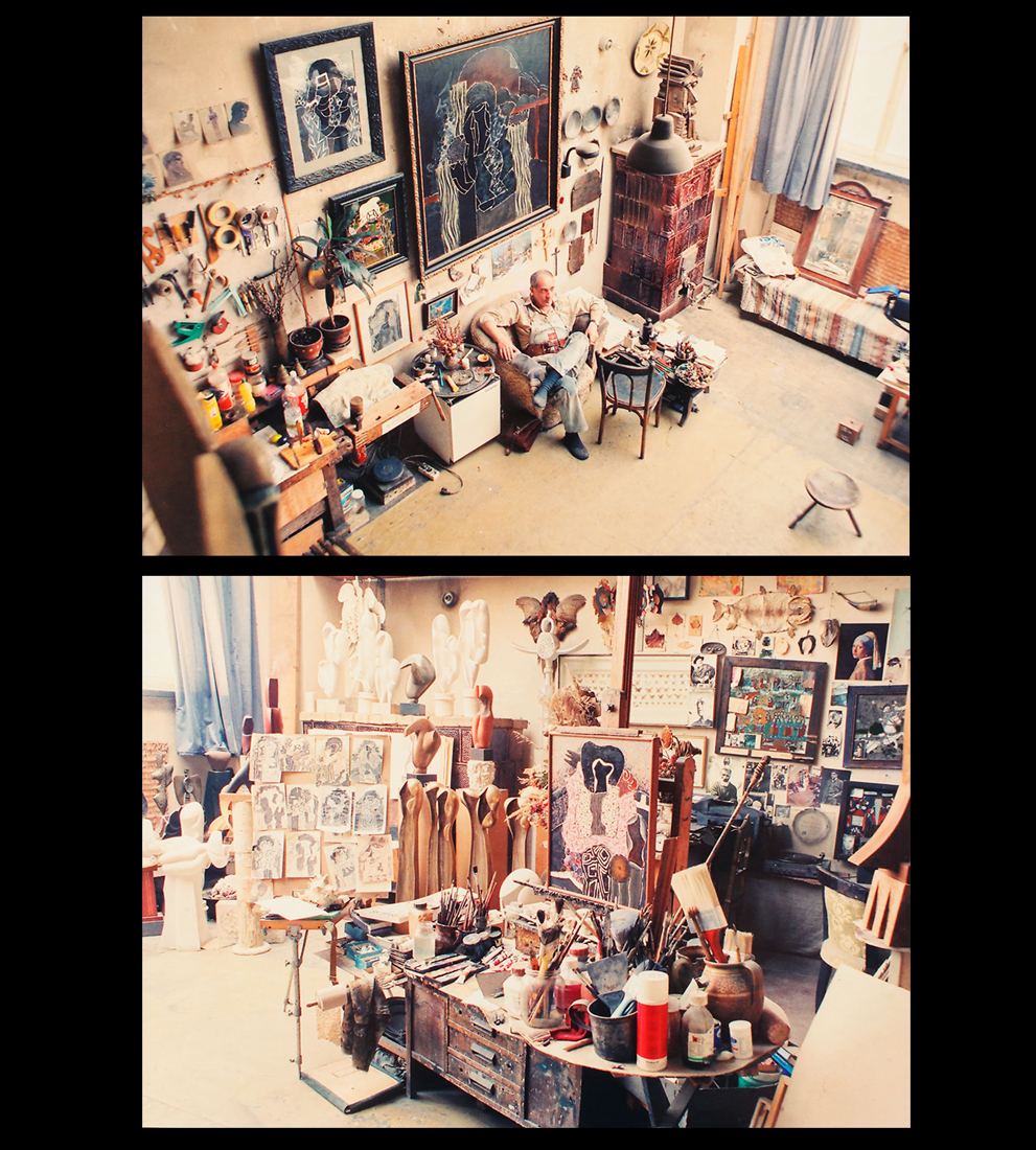58. Lot format din 2 fotografii, realizate de Tudor Octavian, care îl surprind pe maestrul Alin Gheorghiu în atelier