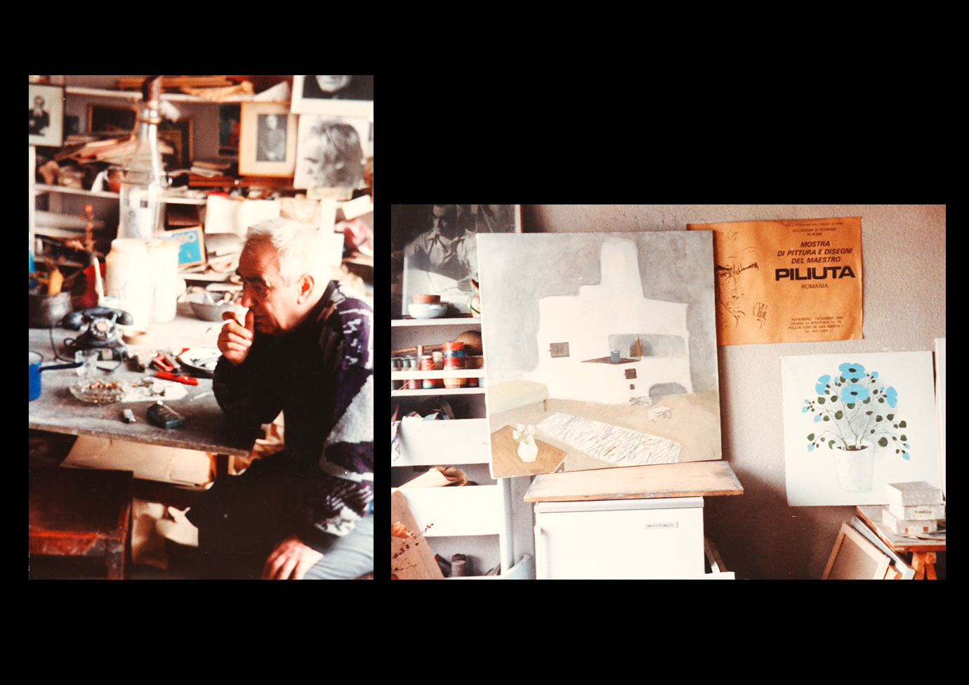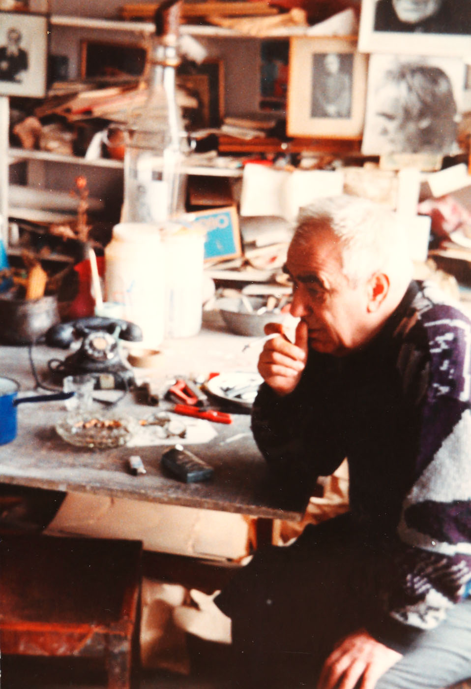 56. Lot format din 2 fotografii, realizate de Tudor Octavian, care îl surprind pe maestrul Constantin Piliuţă în atelier