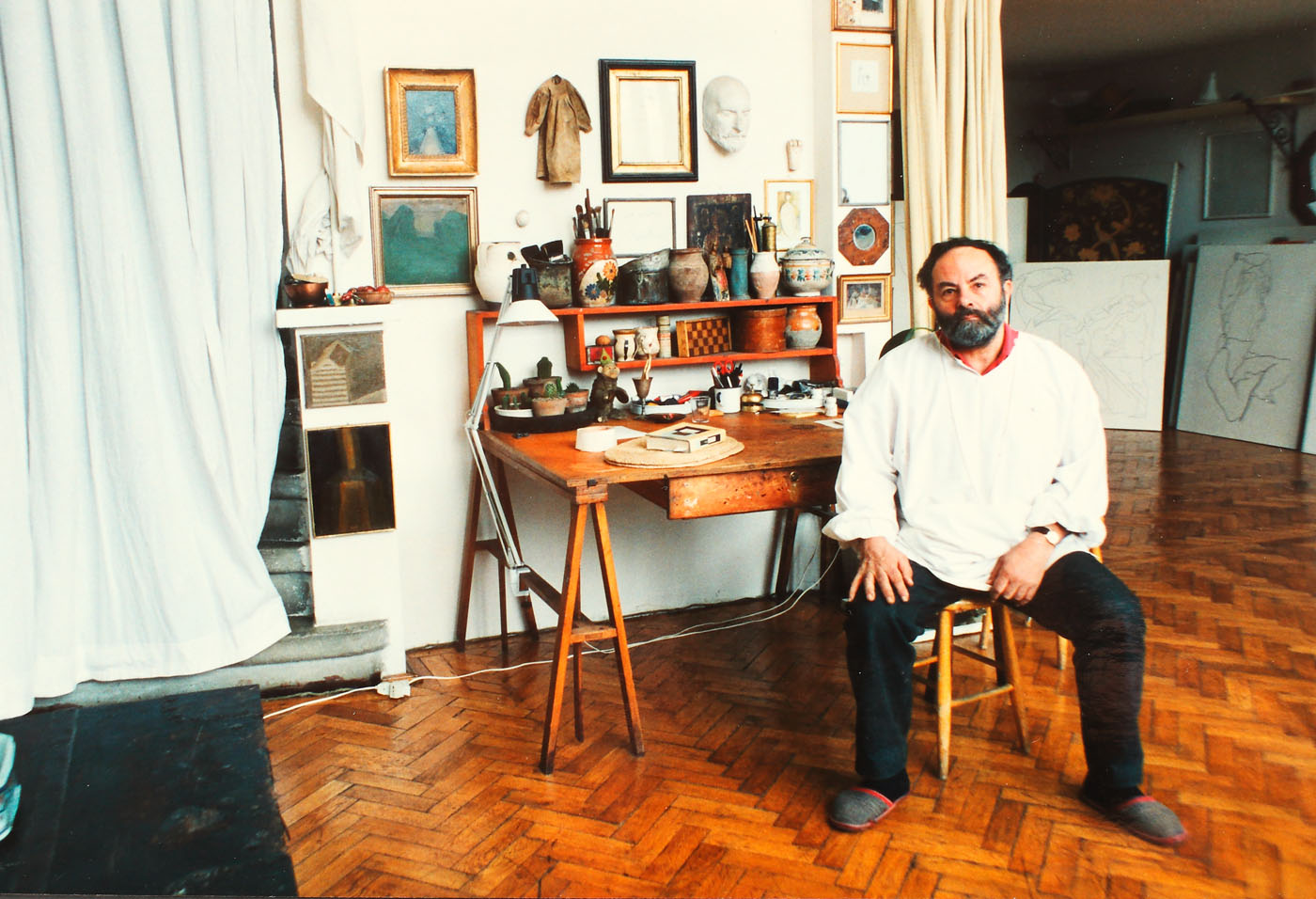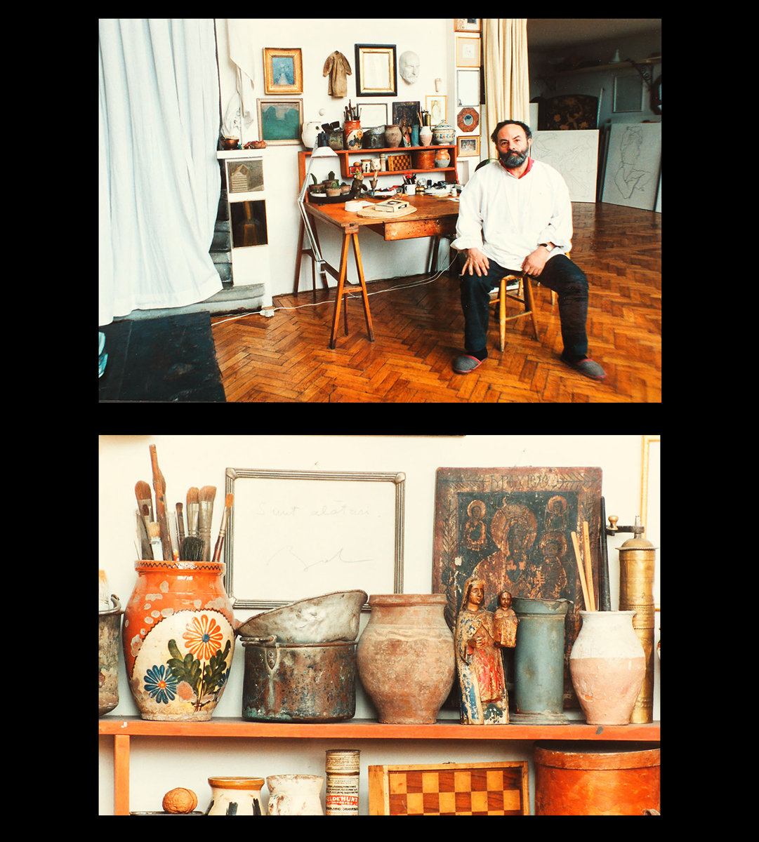 61. Lot format din 2 fotografii, realizate de Tudor Octavian, care îl surprind pe maestrul Henri Mavrodin, în atelier