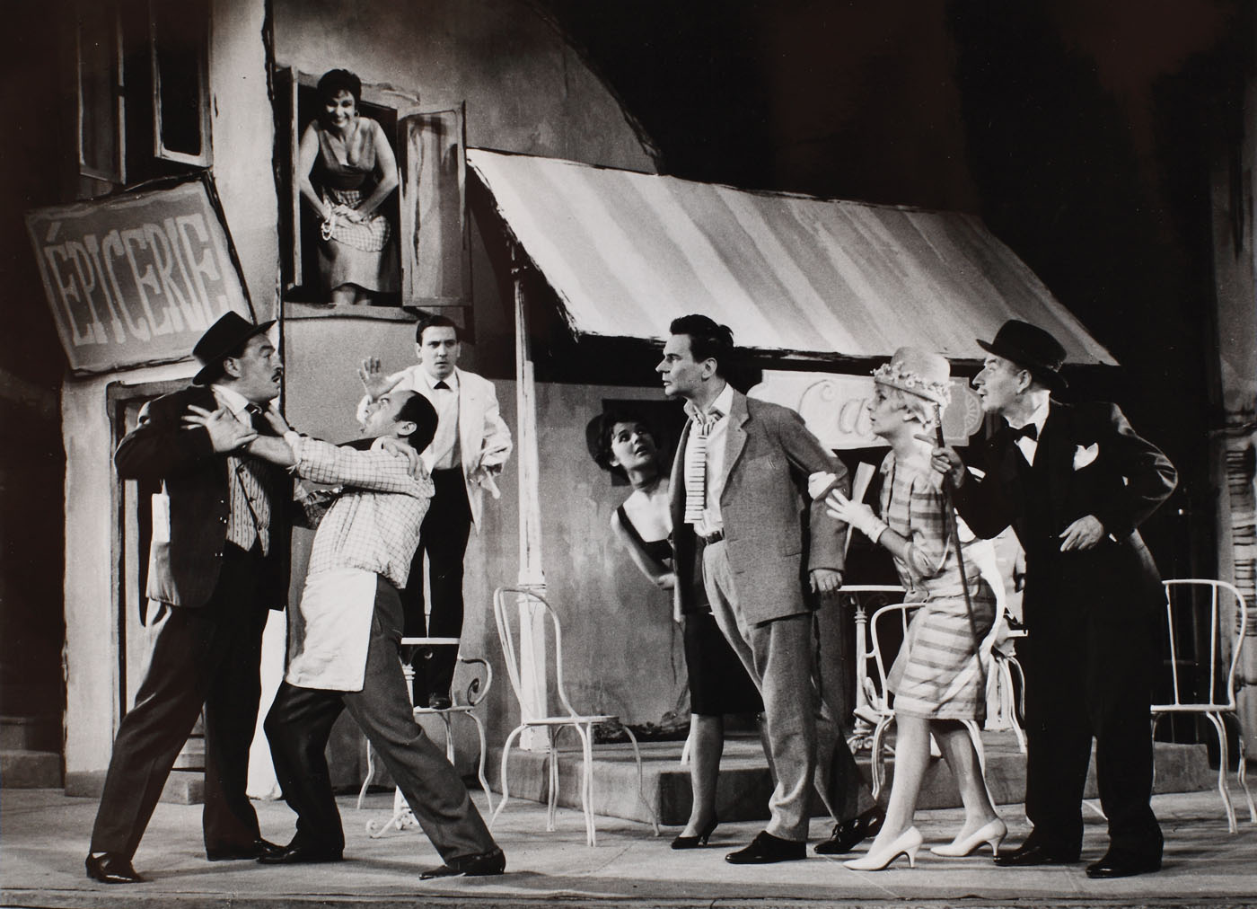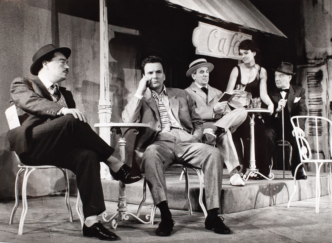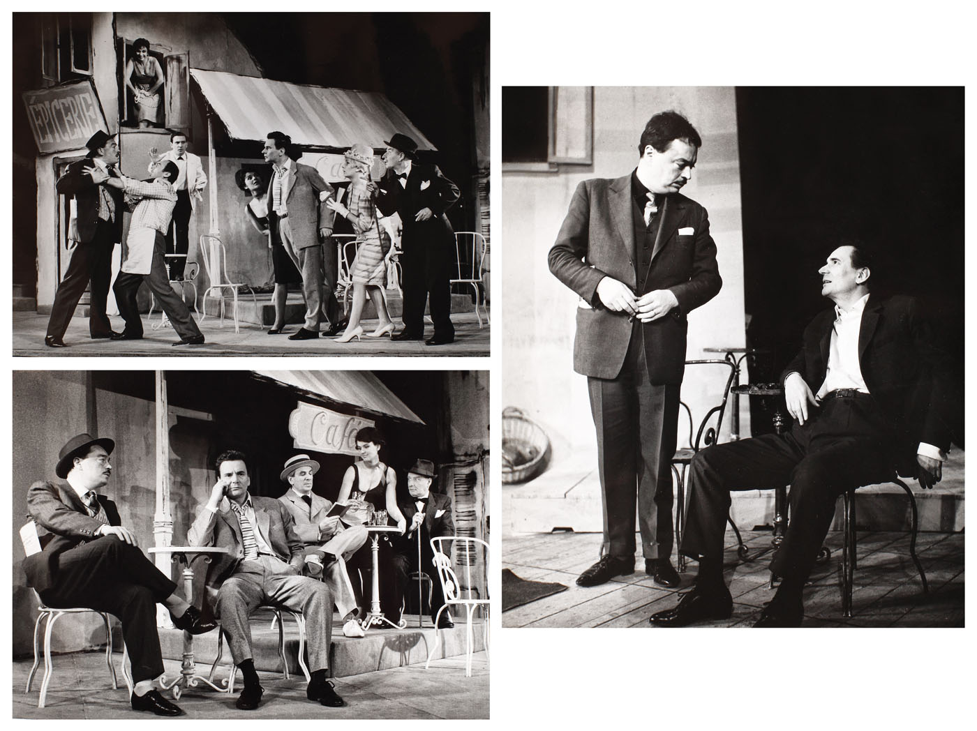 136. Lot format din 3 fotografii reprezentându-l pe Radu Beligan în piesa ”Rinocerii”, de Eugen Ionesco, provin din colecția actorului