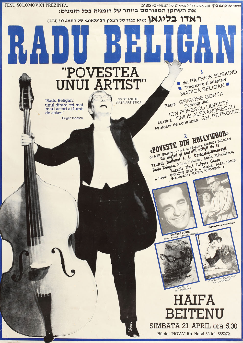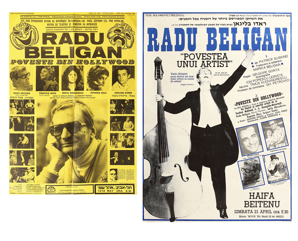 151. Lot format din două afișe ale spectacolelor "Poveste din Hollywood" și "Povestea unui artist" de Patrick Suskind, traducerea și adaptarea de Marica Beligan, regia Grigore Gonța, puse în scenă la Tel Aviv, provin din colecția actorului Radu Beligan