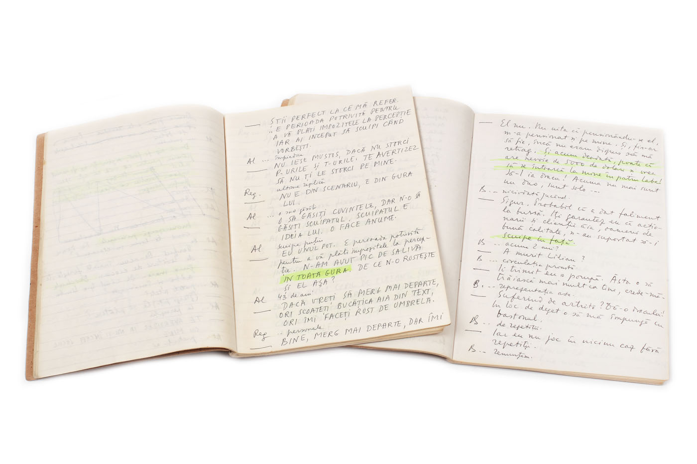 252. Lot format din două caiete-manuscris ale piesei ”Băieții de aur”, de Neil Simon, regia Ion Lucian, 1997, provin din colecția actorului Radu Beligan