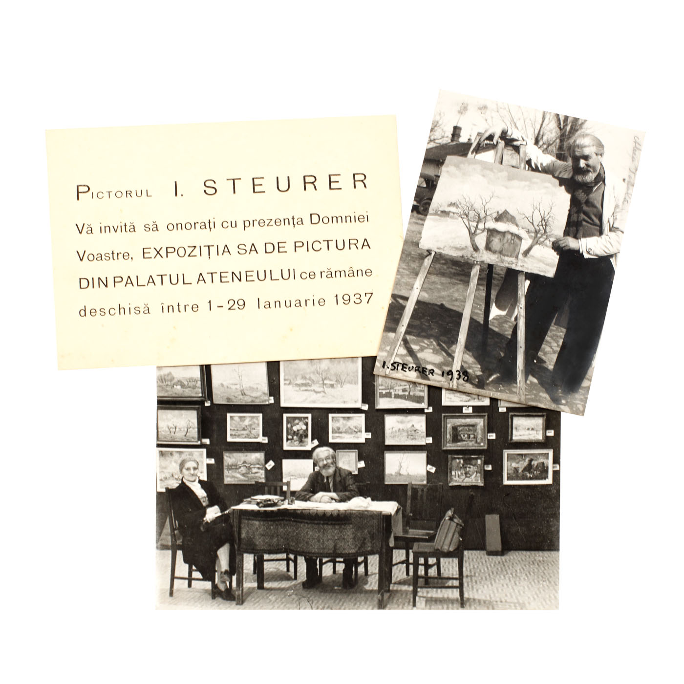 47. Lot format din două fotografii reprezentâdu-l pe Iosif Steurer împreună cu soția sa şi o invitaţie la expoziţia sa de pictură din 1937