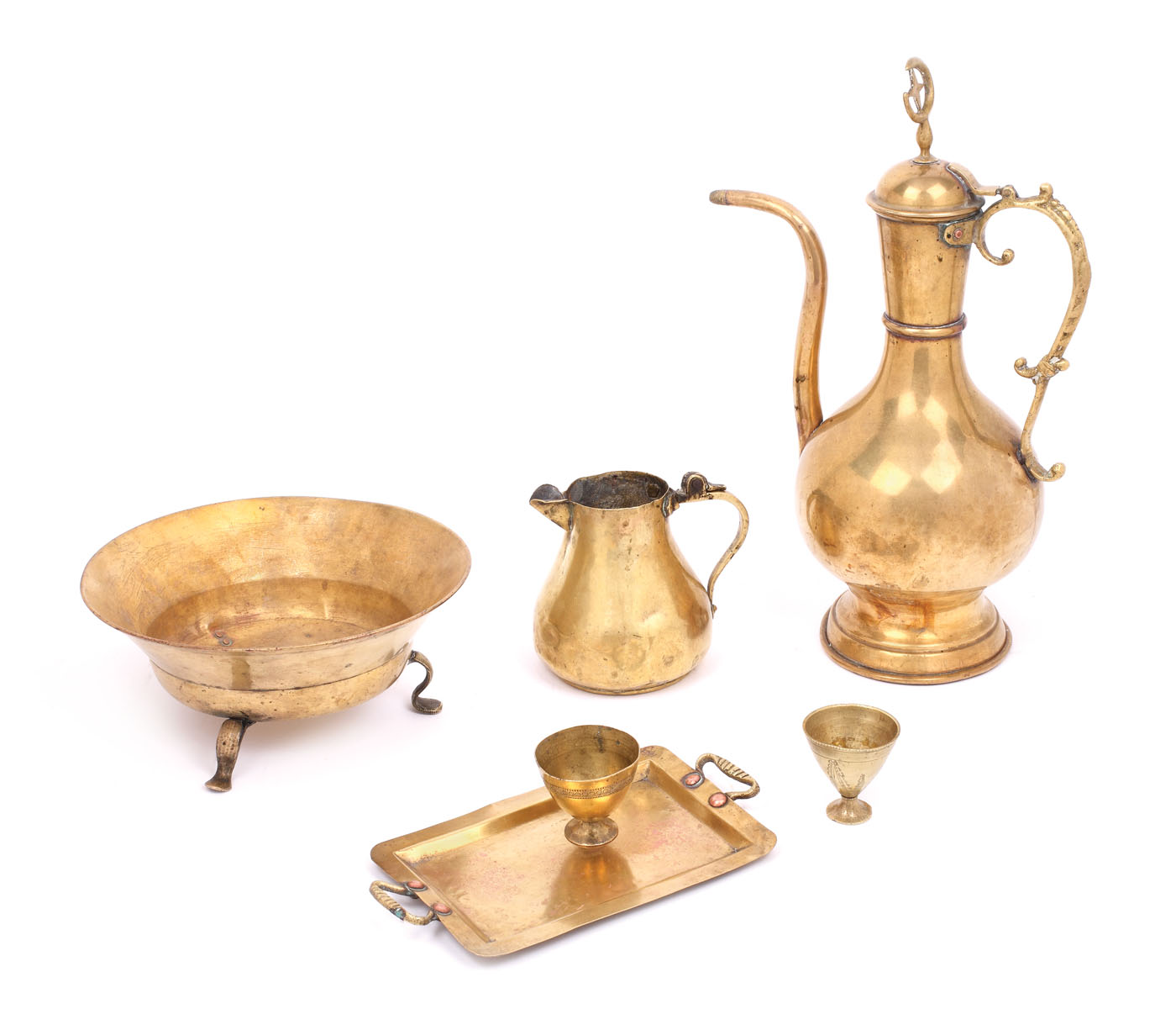 88. Lot format din șapte obiecte decorative din alamă și cupru, provenind din atelierul pictorului Honoriu Crețulescu