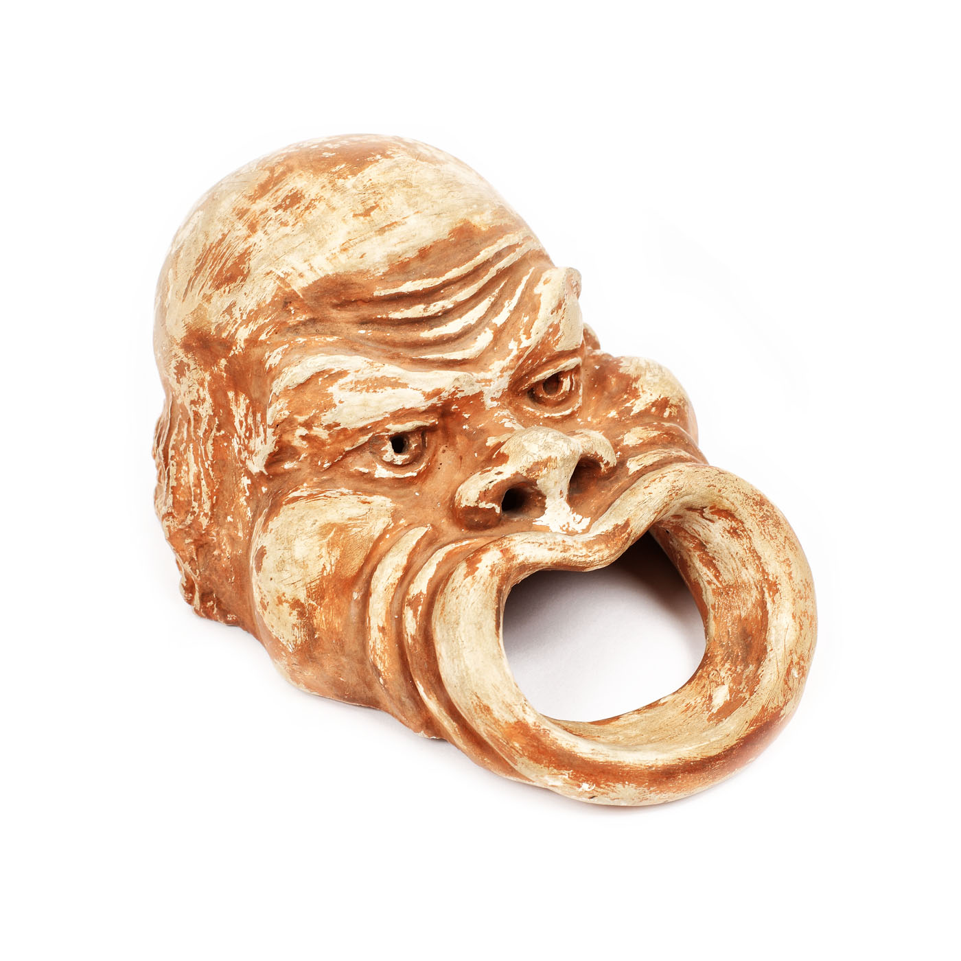 222. Mască din teracotă, purtând o dedicație, provine din colecția actorului Radu Beligan