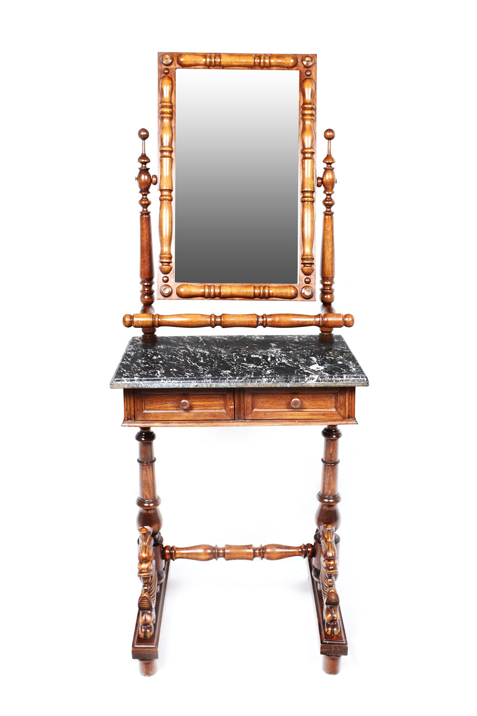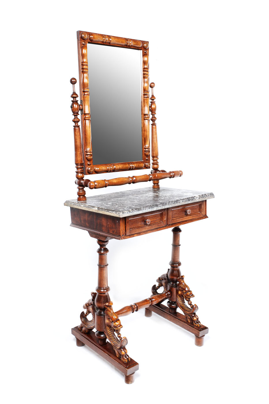 117. Măsuță historistă, pentru toaletă, cu blat din marmură, provine din colecția actorului Radu Beligan