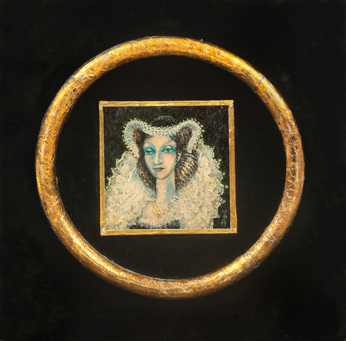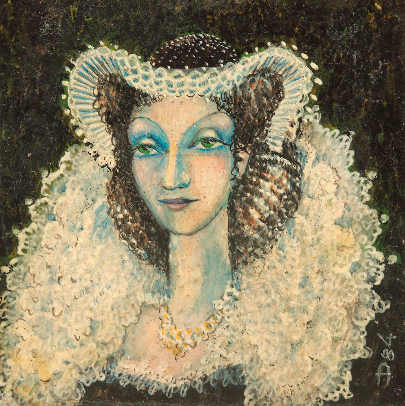 98. Miniatură, portret de aristocrată, înfăţişată în costum tip Elisabeta I, provine din colecția actorului Radu Beligan