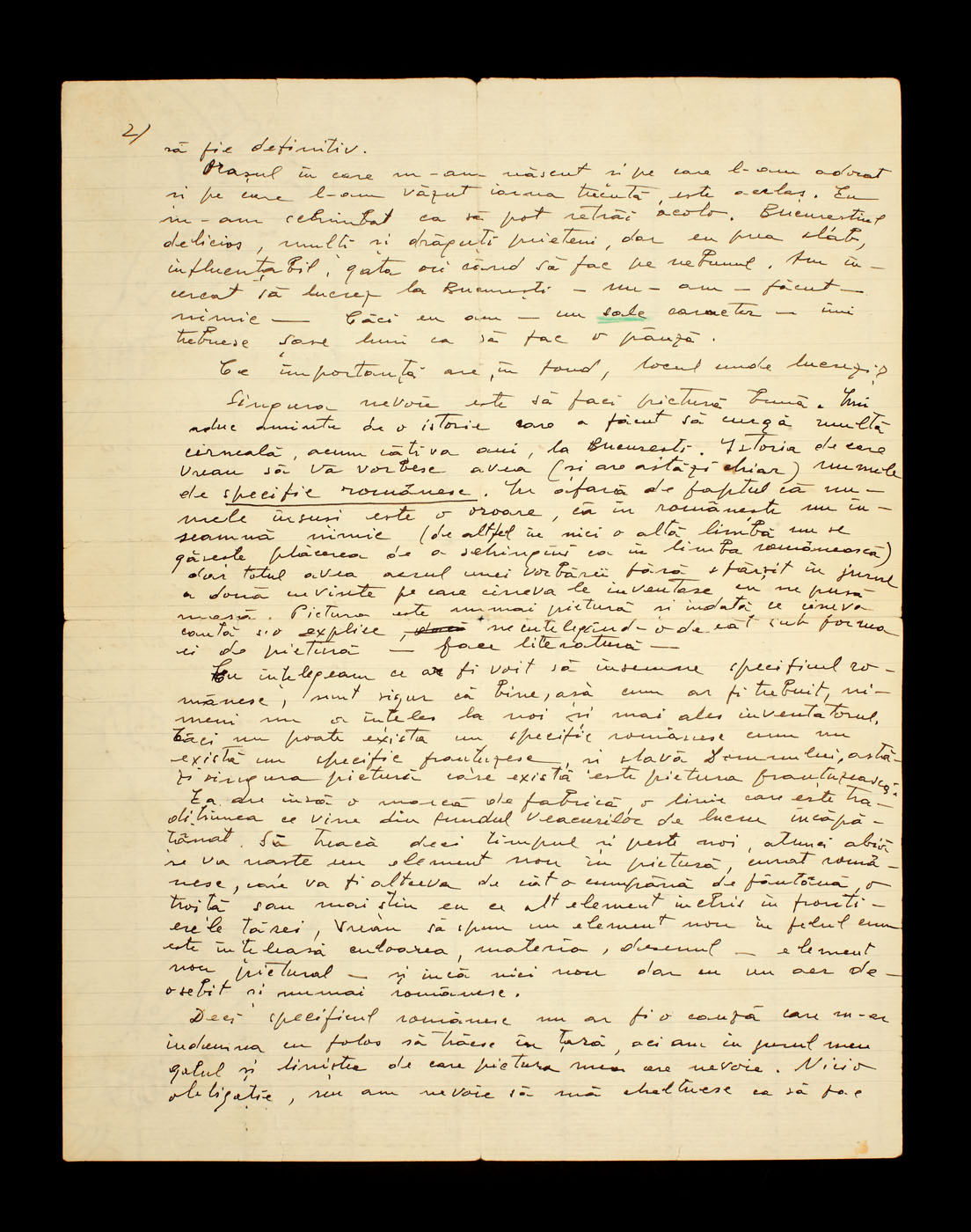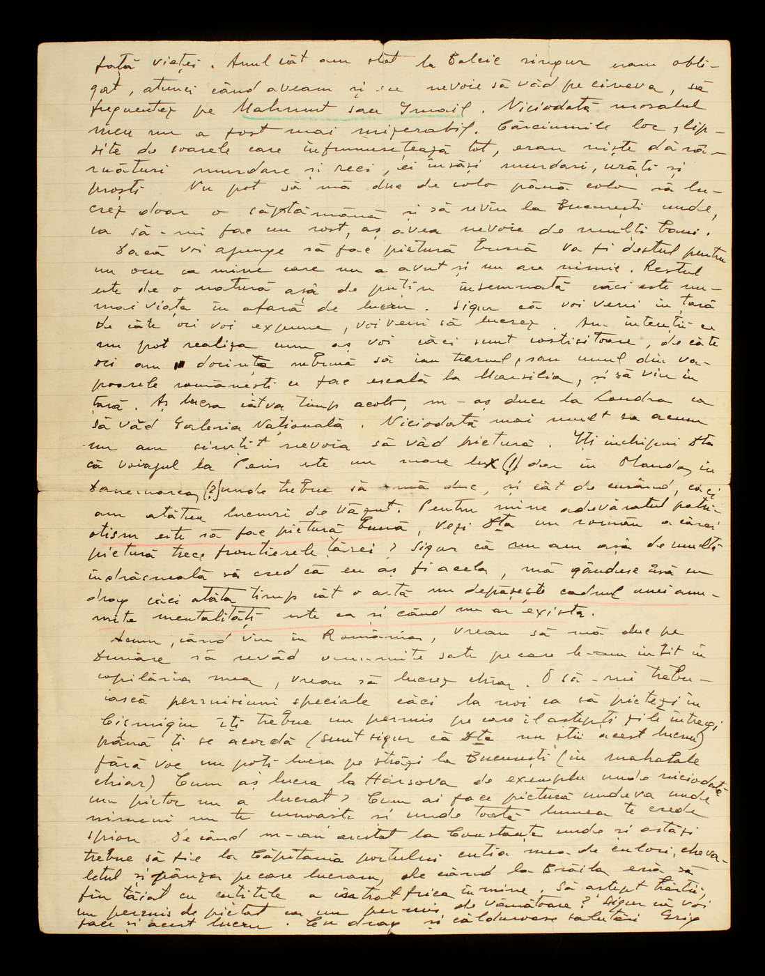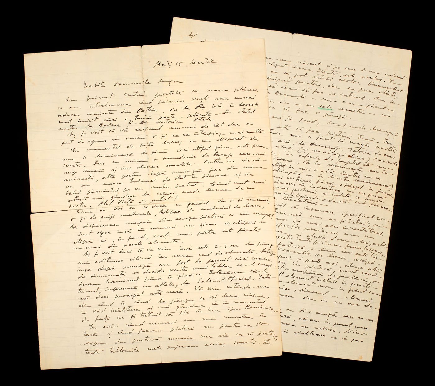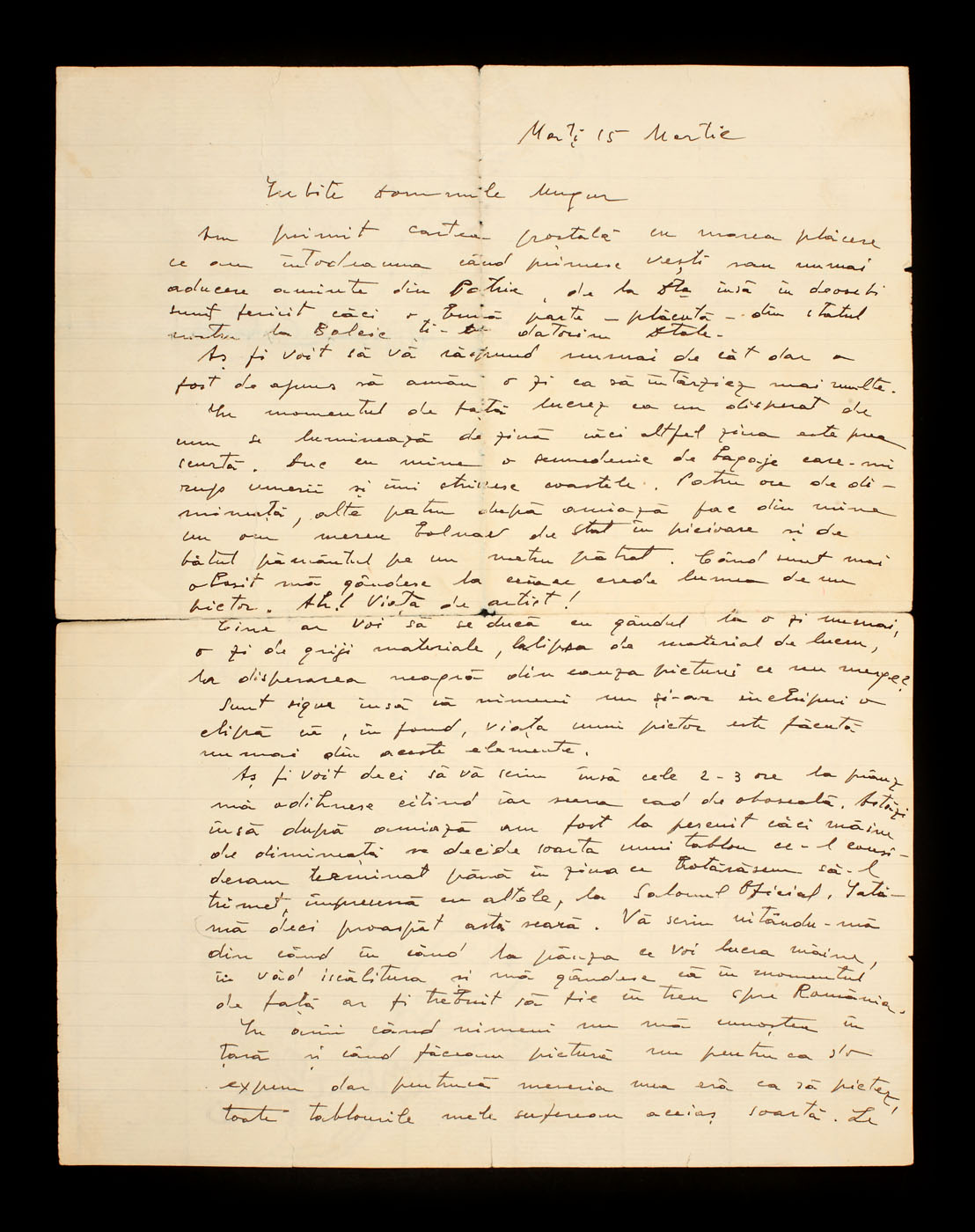 40. Scrisoare trimisă de Lucian Grigorescu către Gheorghe D. Mugur, directorul Fundațiilor Regale (și comandant al Marii Legiuni a Cercetașilor României), despre condiția artistului român, Cassis, mijlocul anilor 1930 (2 file)