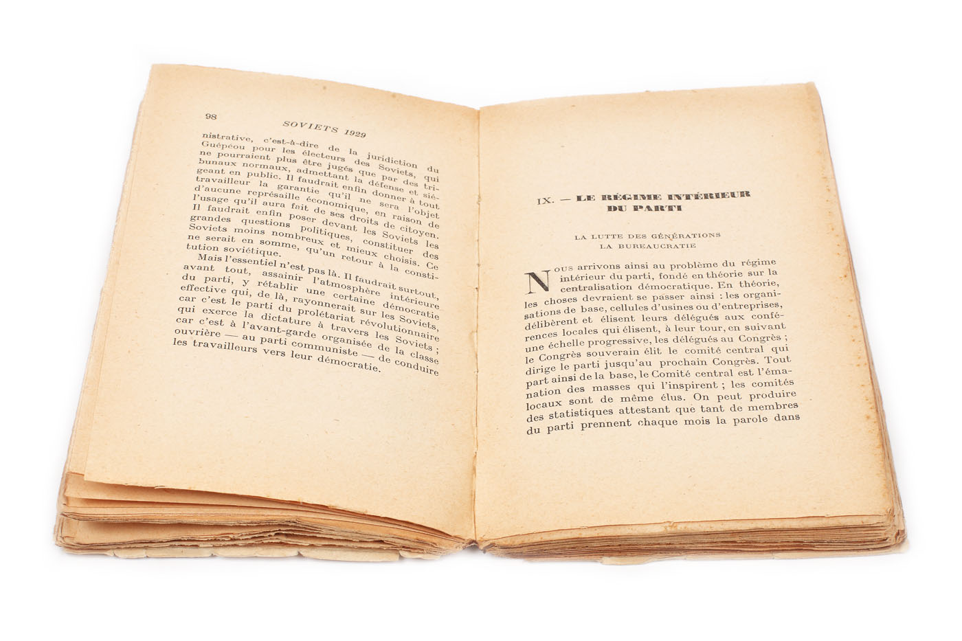 171. ”Soviets 1929”, de Panait Istrati, franceză, Paris, 1929, provine din colecția actorului Radu Beligan