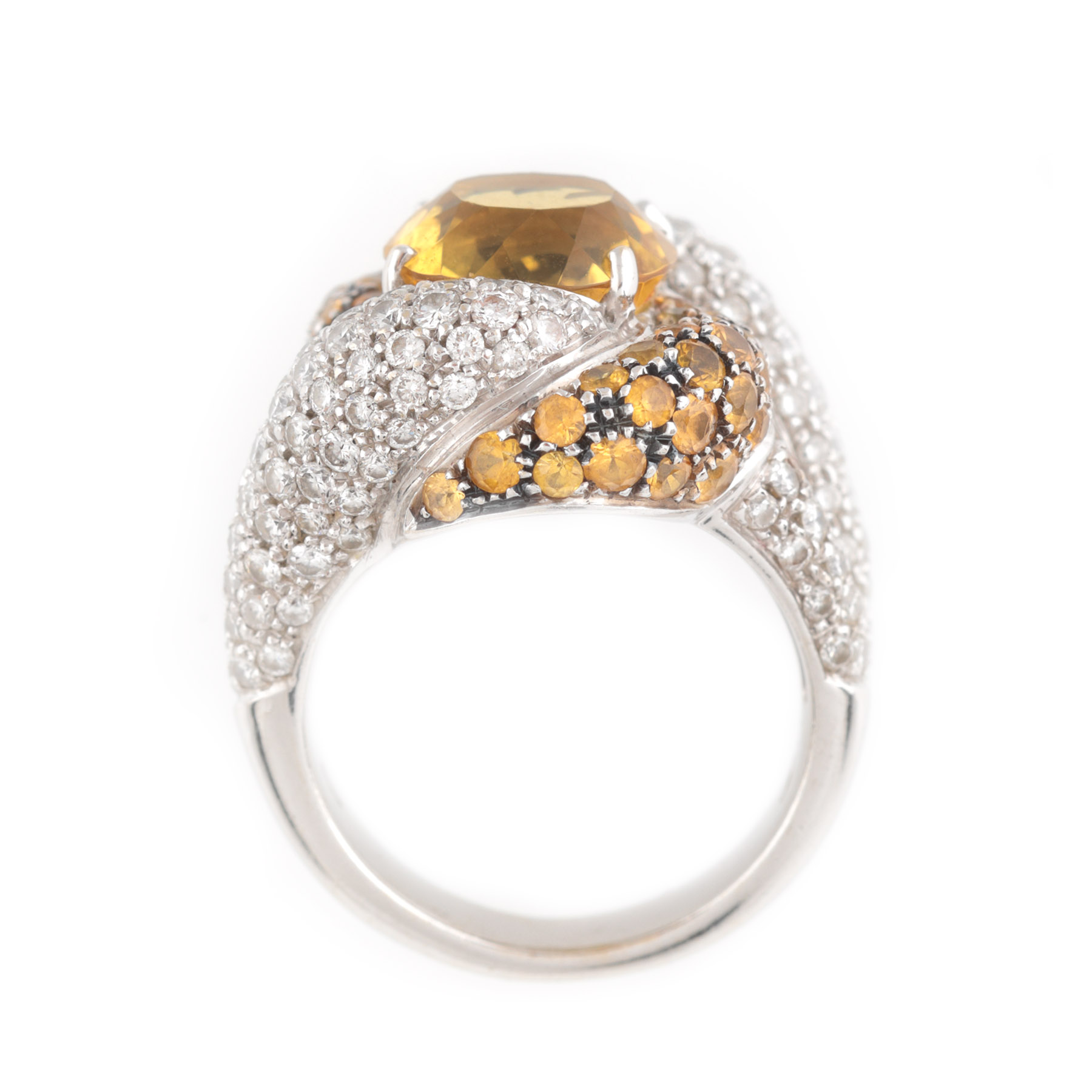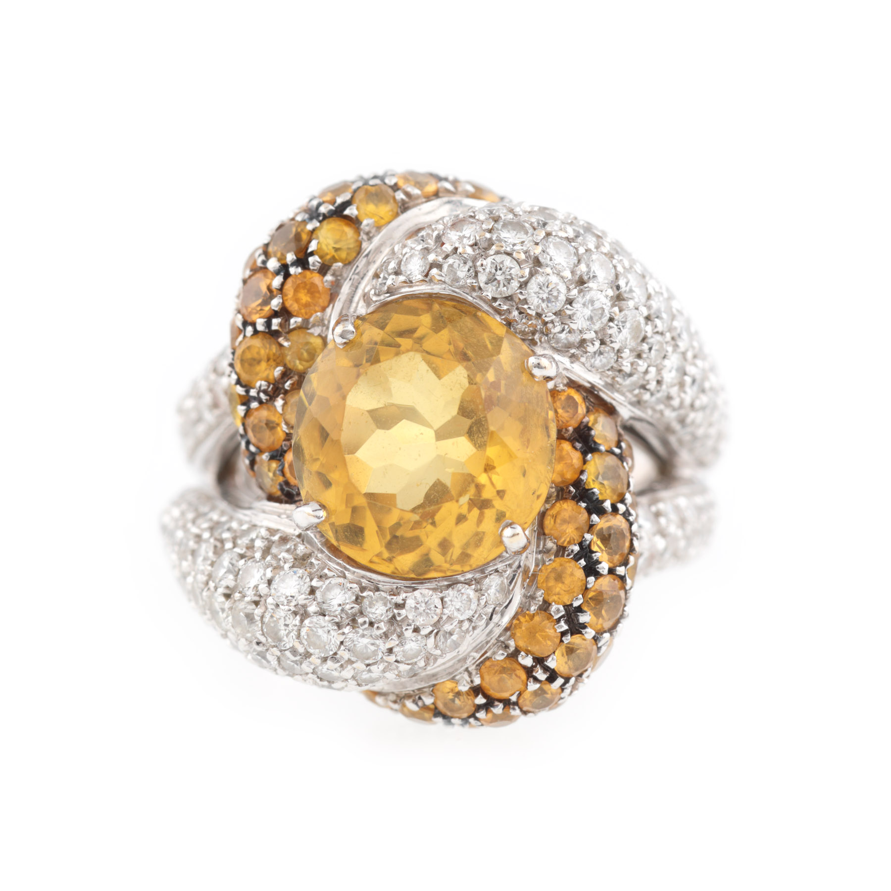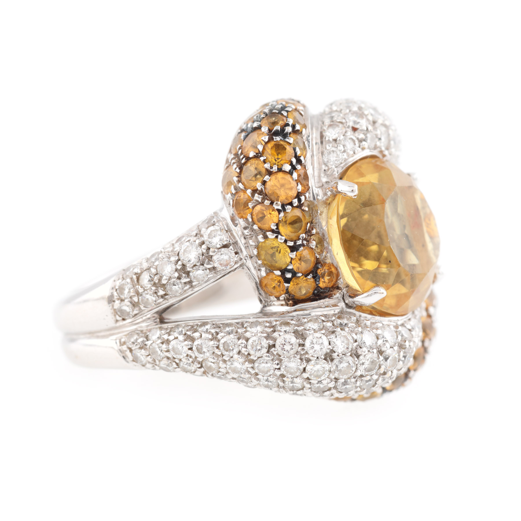61. Inel din aur alb, decorat cu un citrin central, anturat de diamante și citrine