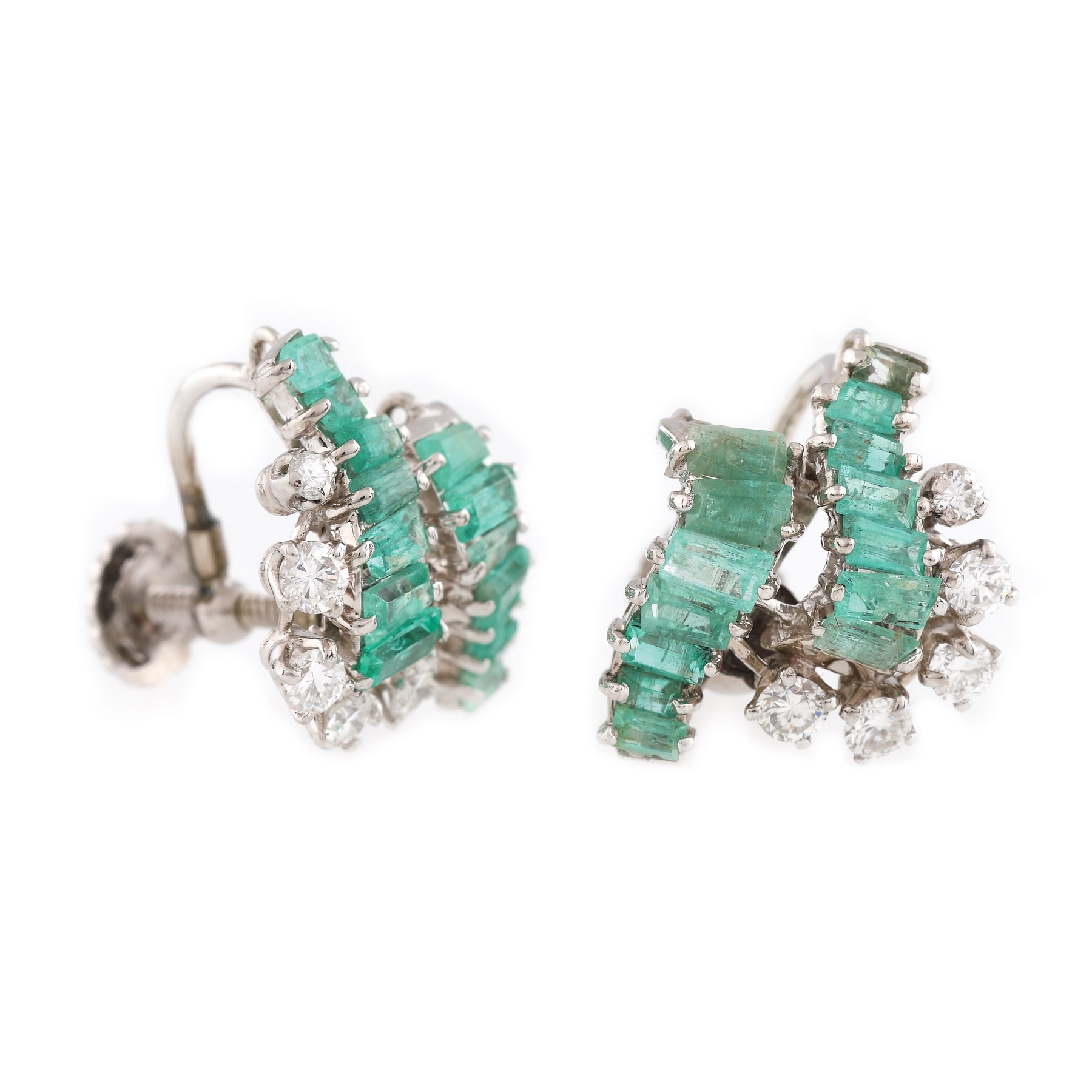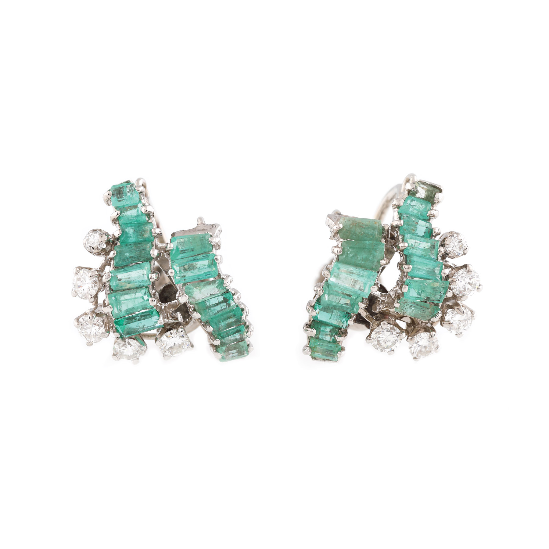 53. Pereche de cercei din aur alb, ornată cu smaralde și diamante