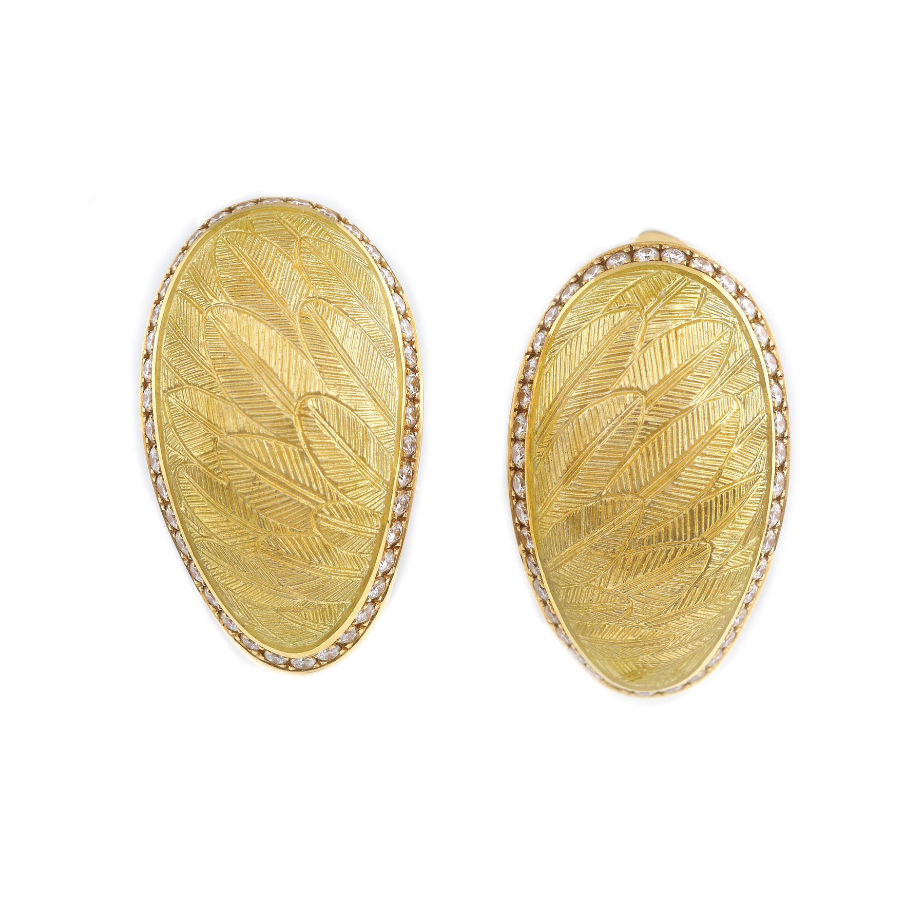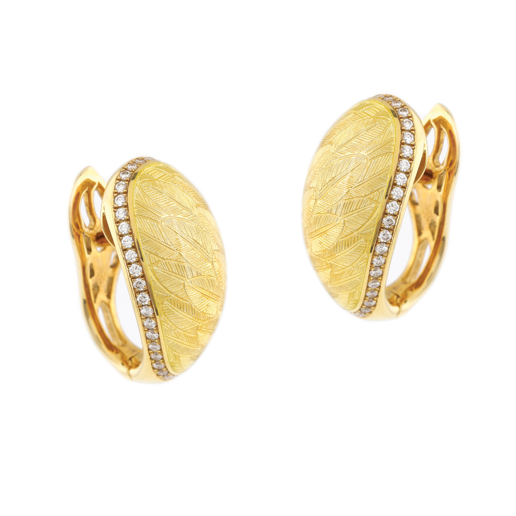 63. Pereche de cercei Fabergé din aur, decorată cu email și diamante, piesă numerotată 16 din 300