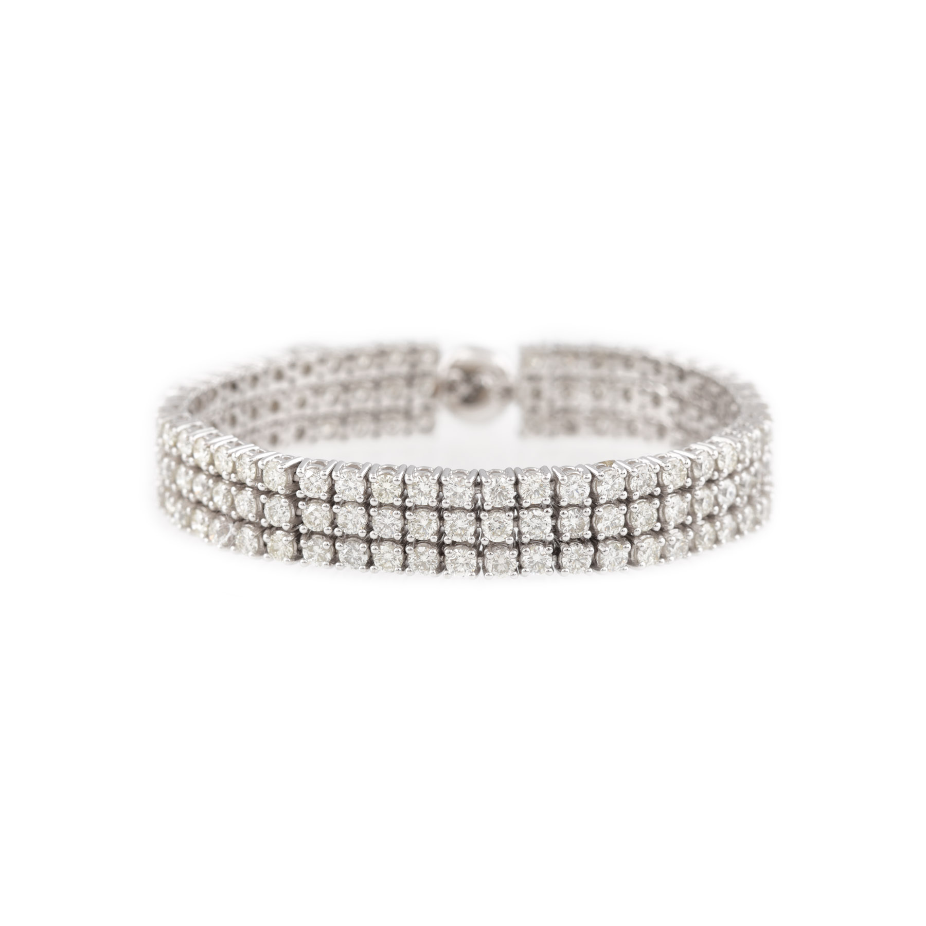 55. Superbă brățară din aur alb, decorată cu trei rânduri de diamante