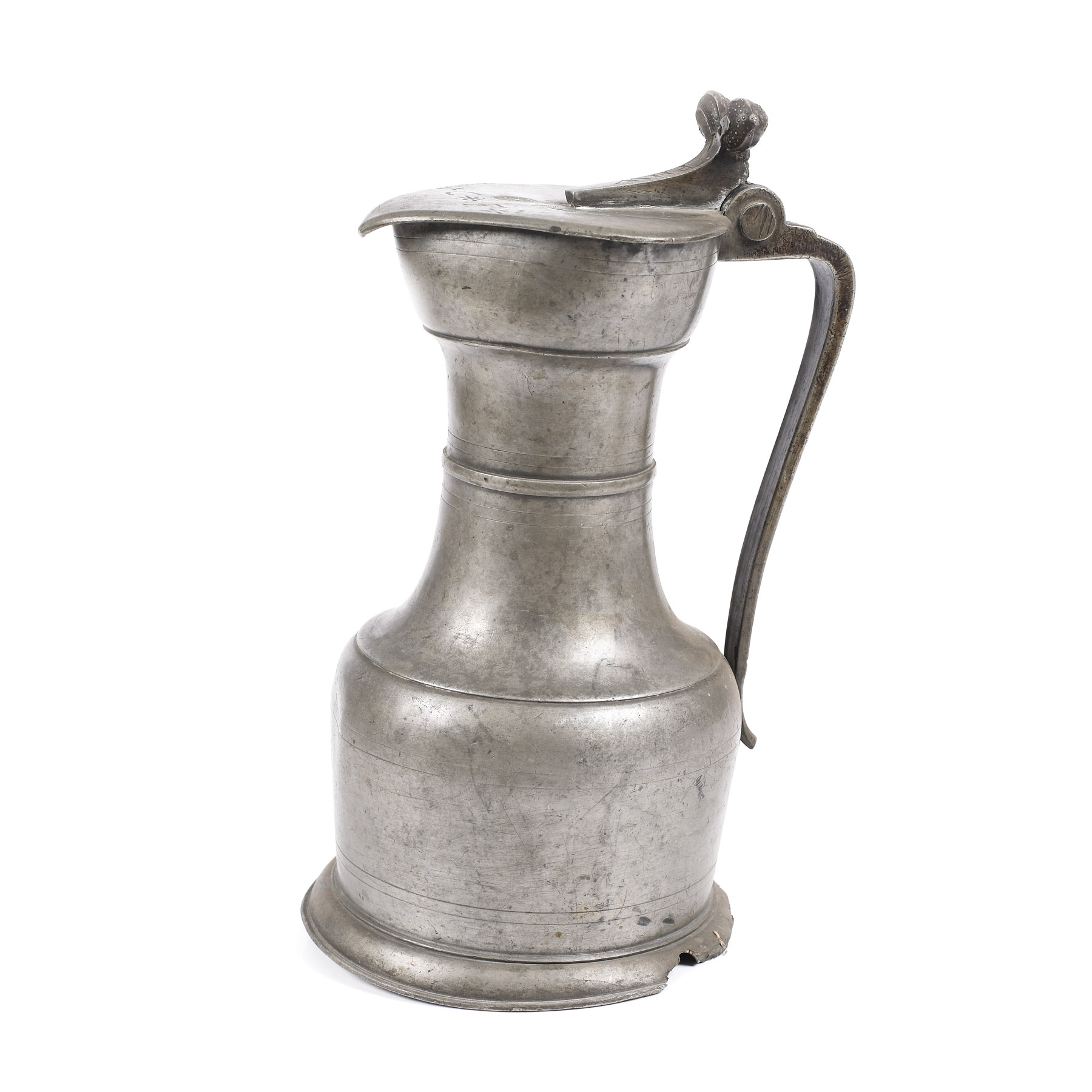 Piesă în formă de bulb, cu un capac plat, cu dispozitiv de deschidere pe care sunt gravate inițialele "PHW". Pe capac, inițialele striate "FC" și două mărci, una de calitate și cealaltă de meșter și oraș (Meșter Pierre Andre Utin: 1688-1771, Vevey). La origine, acest tip de cană a fost executată în lemn, ulterior în metal și servea la transportul vinului. Este tipică pentru spațiul elvețian.