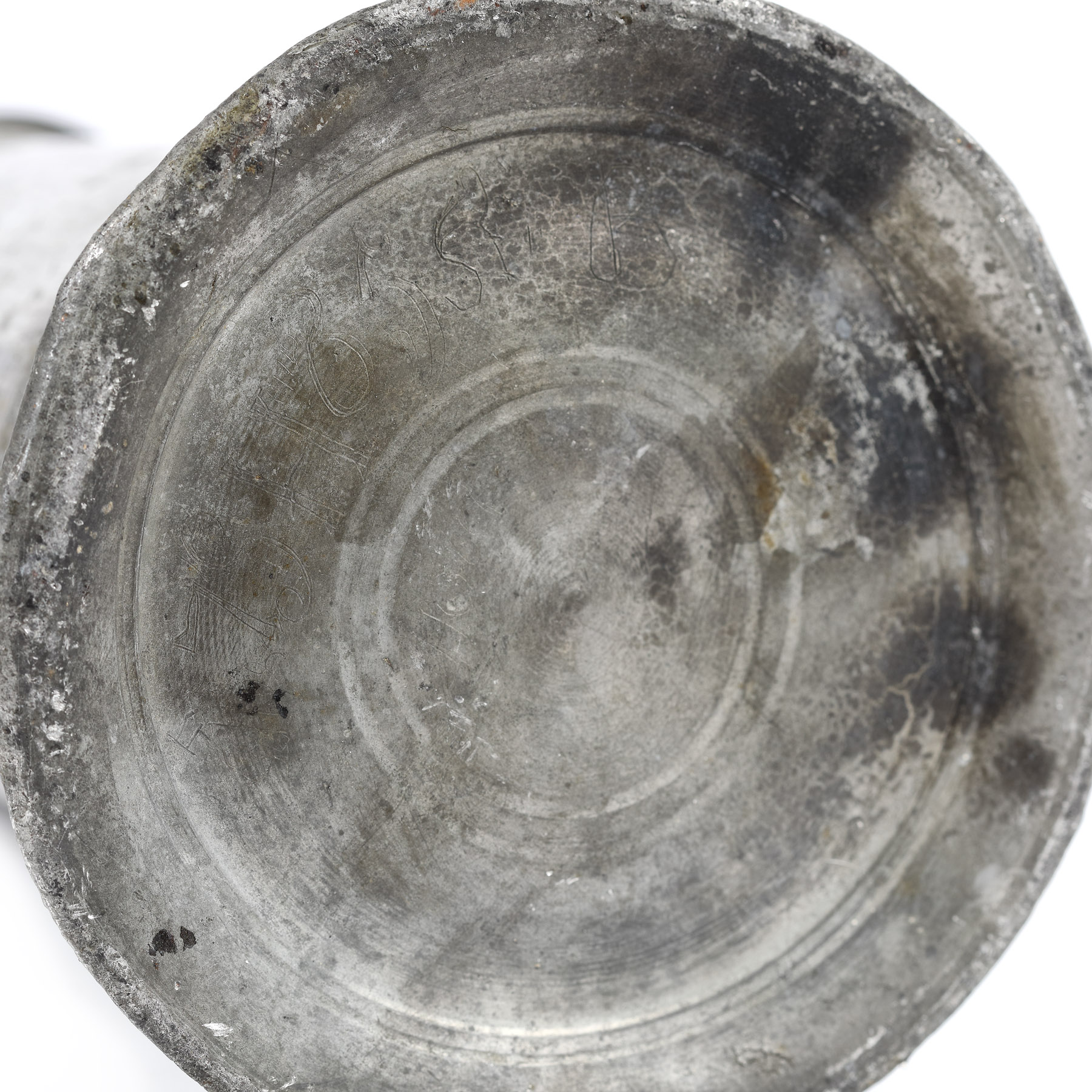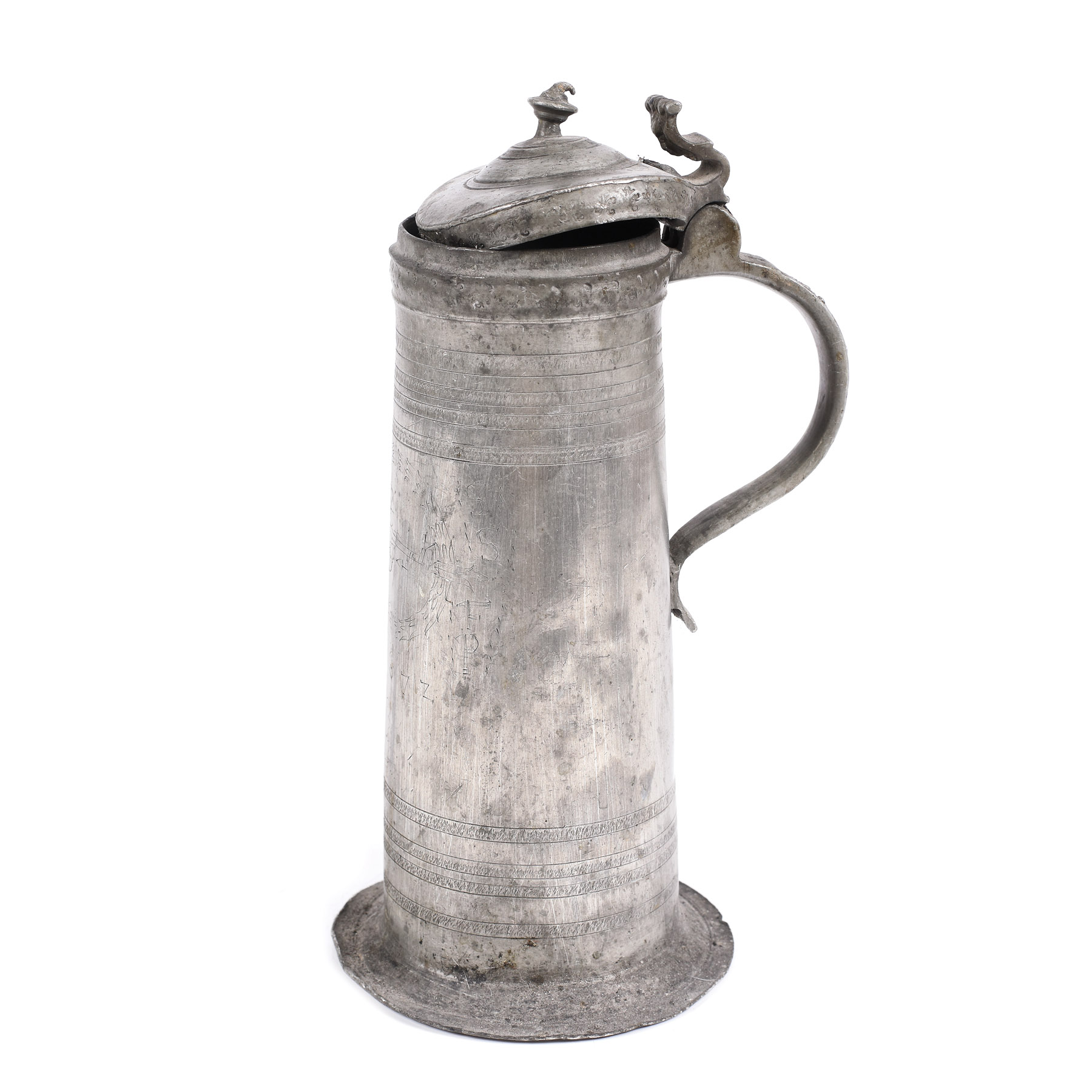 88C. Carafă cu capac, gravată cu emblema breslei rotarilor, Sighișoara, 1672, provine din colecţia Lucrezia și Ion Pacea
