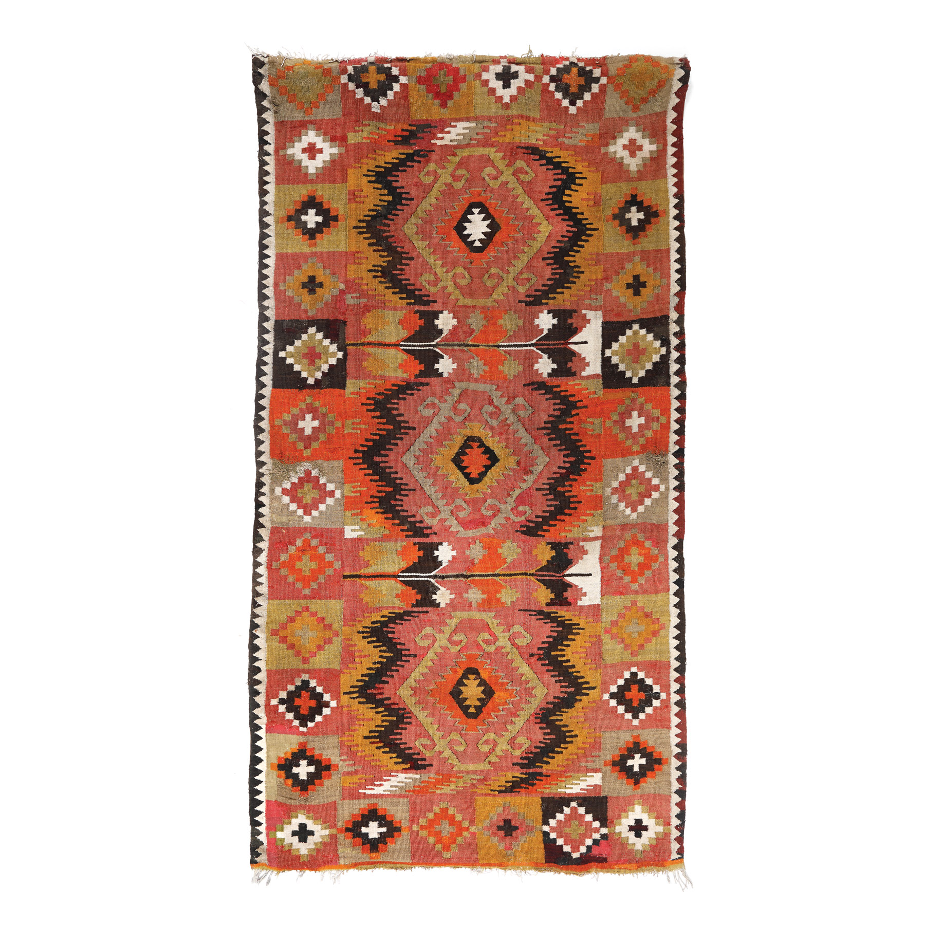 82. Covor din lână pe urzeală din bumbac, producție țărănească, lucrat în Țara Vrancei, decorat cu elemente geometrice și pomul vieții, începutul sec. XX, provine din colecţia Lucrezia și Ion Pacea