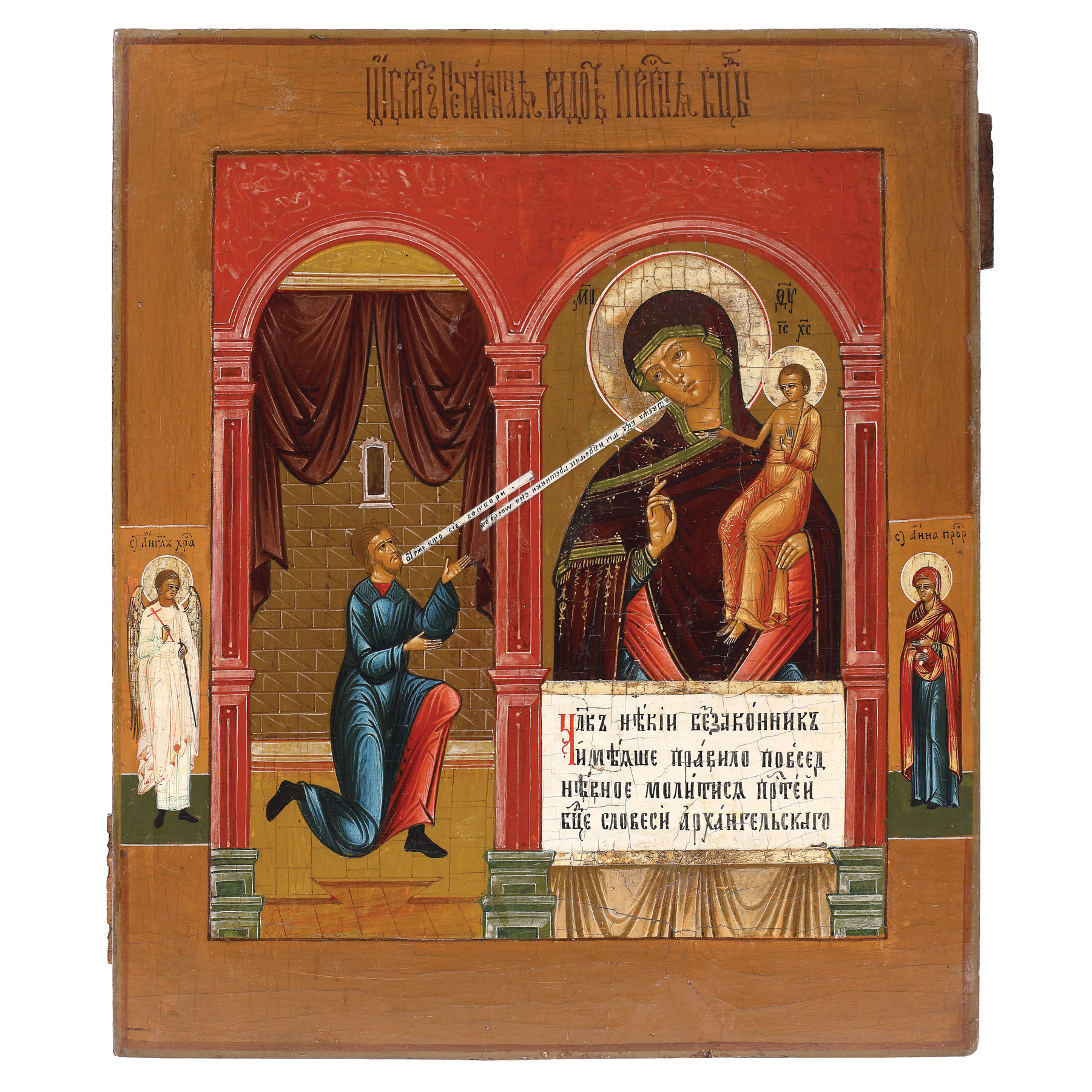 60. Icoană pe lemn, "Maica Domnului cu Pruncul - Bucurie Neaşteptată", școală rusească, începutul sec. XIX, provine din colecţia Lucrezia și Ion Pacea