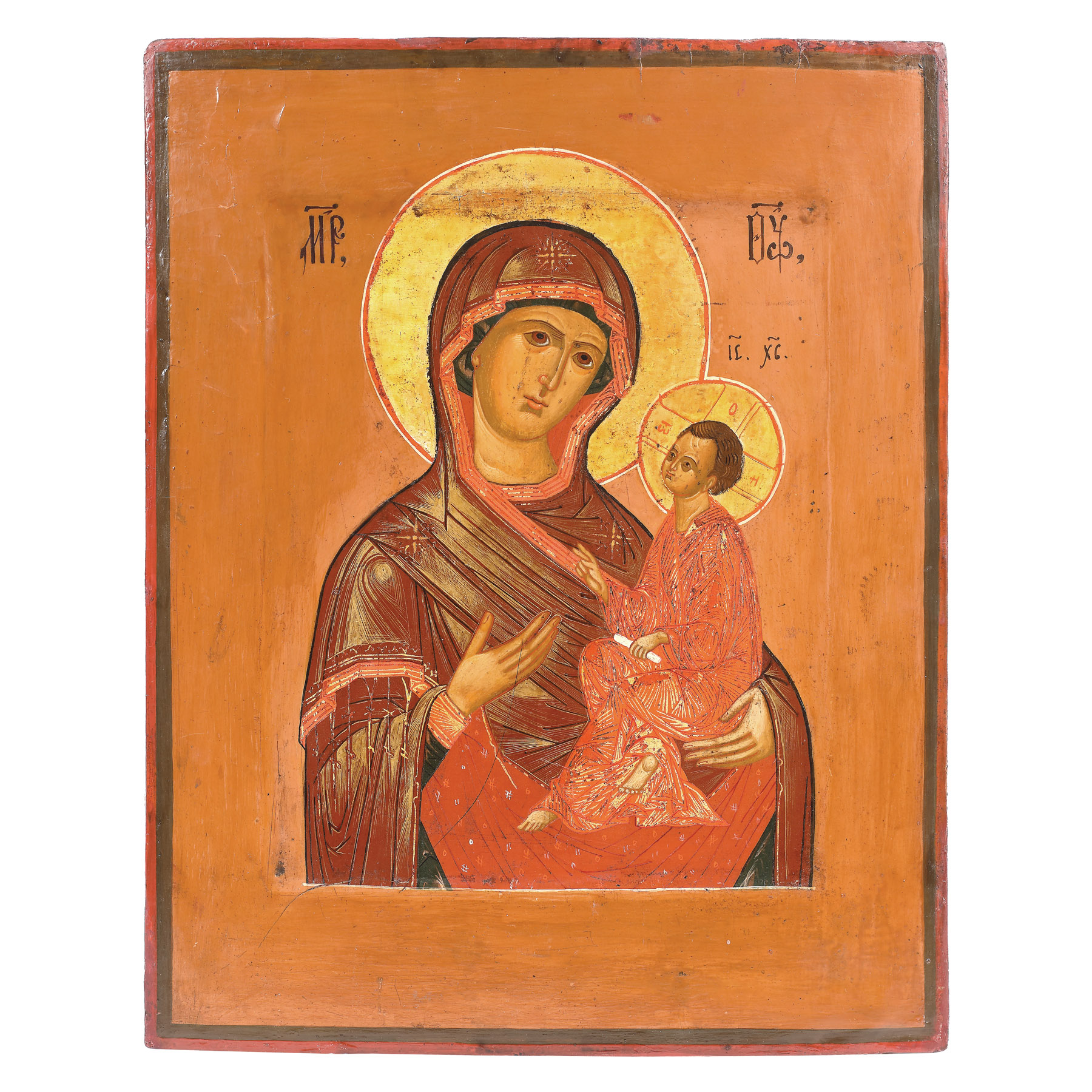 68. Icoană pe lemn, "Maica Domnului cu Pruncul (Hodighitria), școală rusească, prima jumătate a sec. XIX, provine din colecţia Lucrezia și Ion Pacea