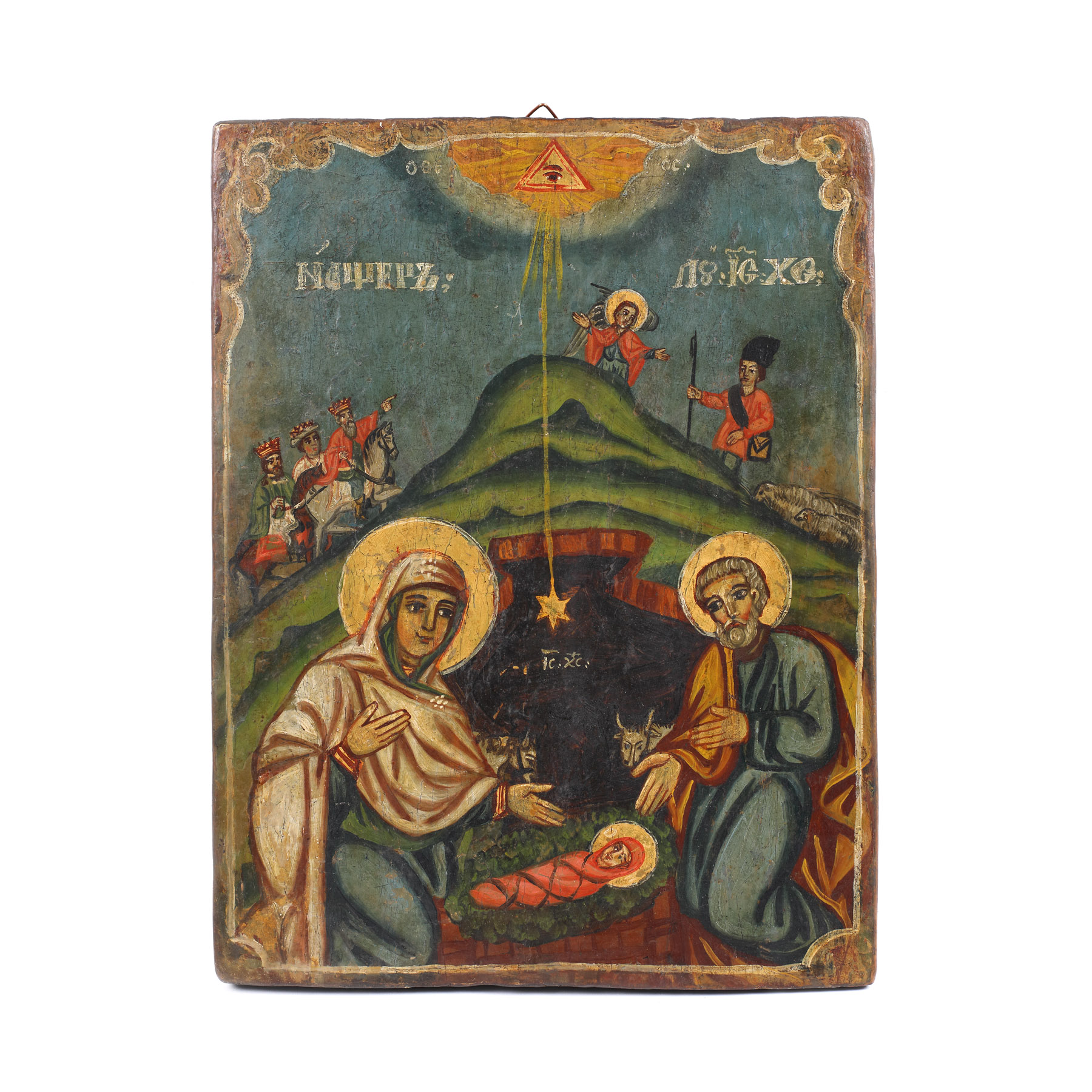 56. Icoană pe lemn, "Nașterea Domnului și închinarea magilor", școală românească, jumătatea sec. XIX, provine din colecţia Lucrezia și Ion Pacea