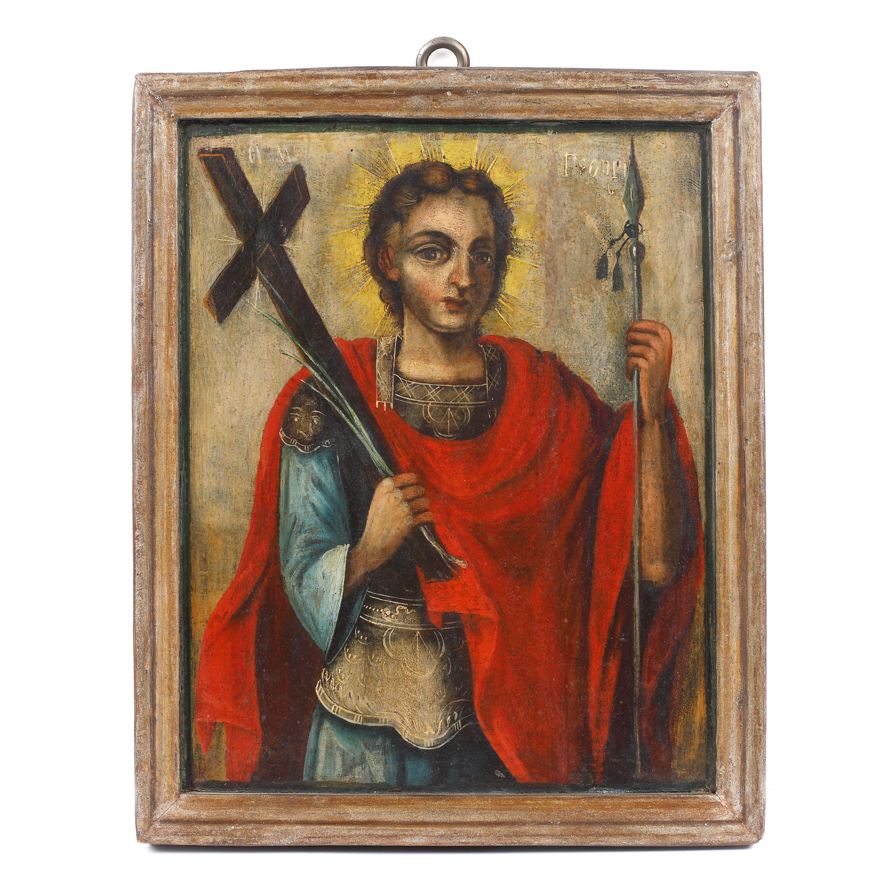 64. Icoană pe lemn, "Sfântul Gheorghe", școală românească, sfârșitul sec. XIX, provine din colecţia Lucrezia și Ion Pacea