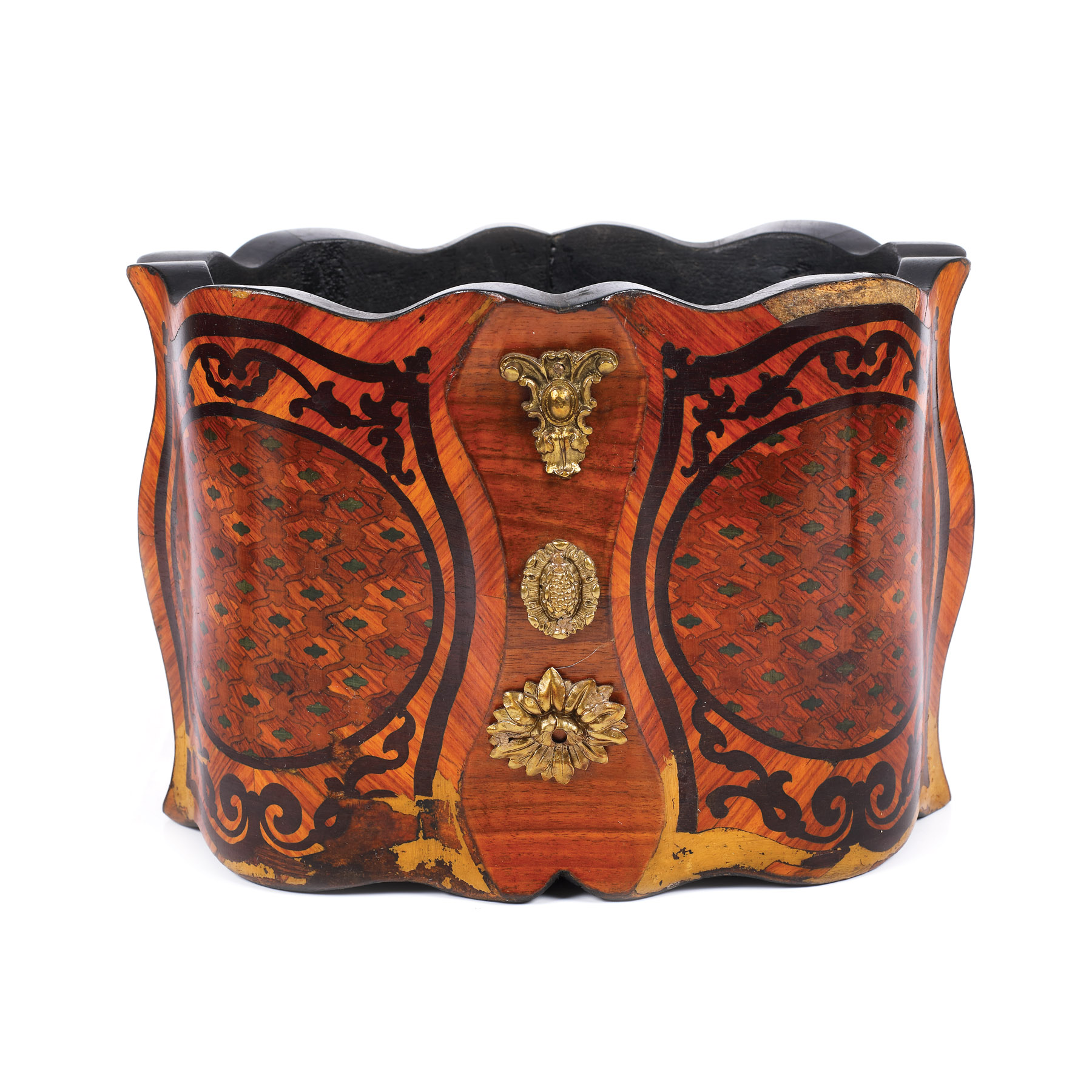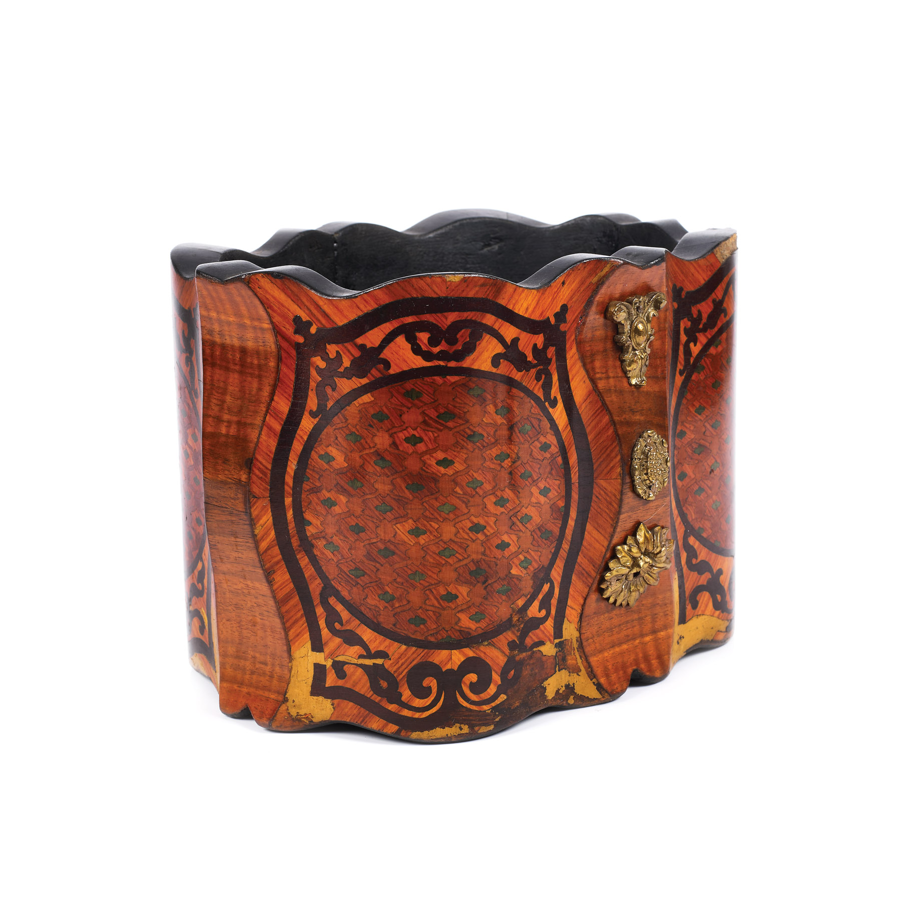 123. Jardinieră în stil Napoleon III, din lemn marchetat, sec. XIX, provine din colecţia Lucrezia și Ion Pacea
