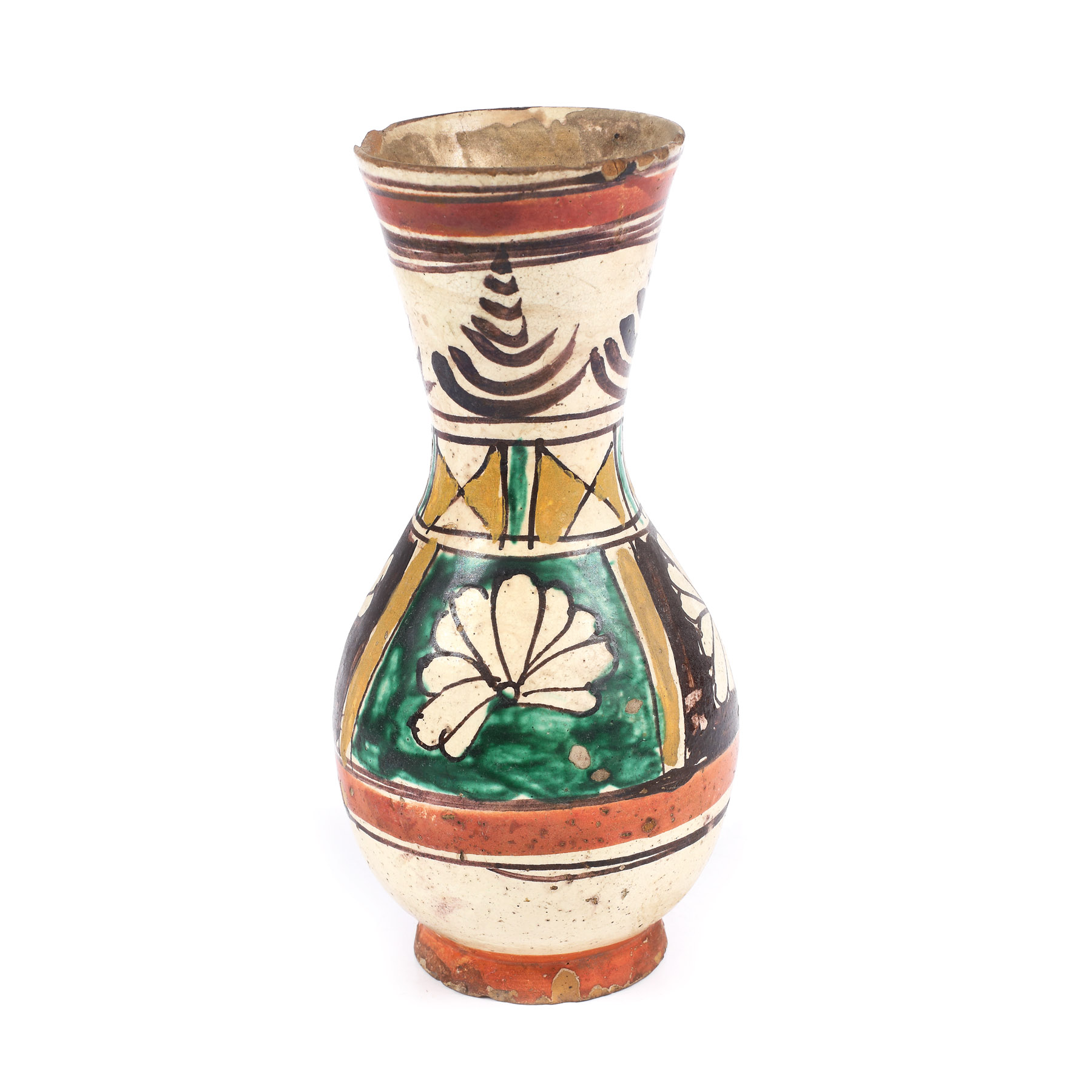 argilă comună, modelată manual pe roată, angobă, smălțuită, ardere dublă