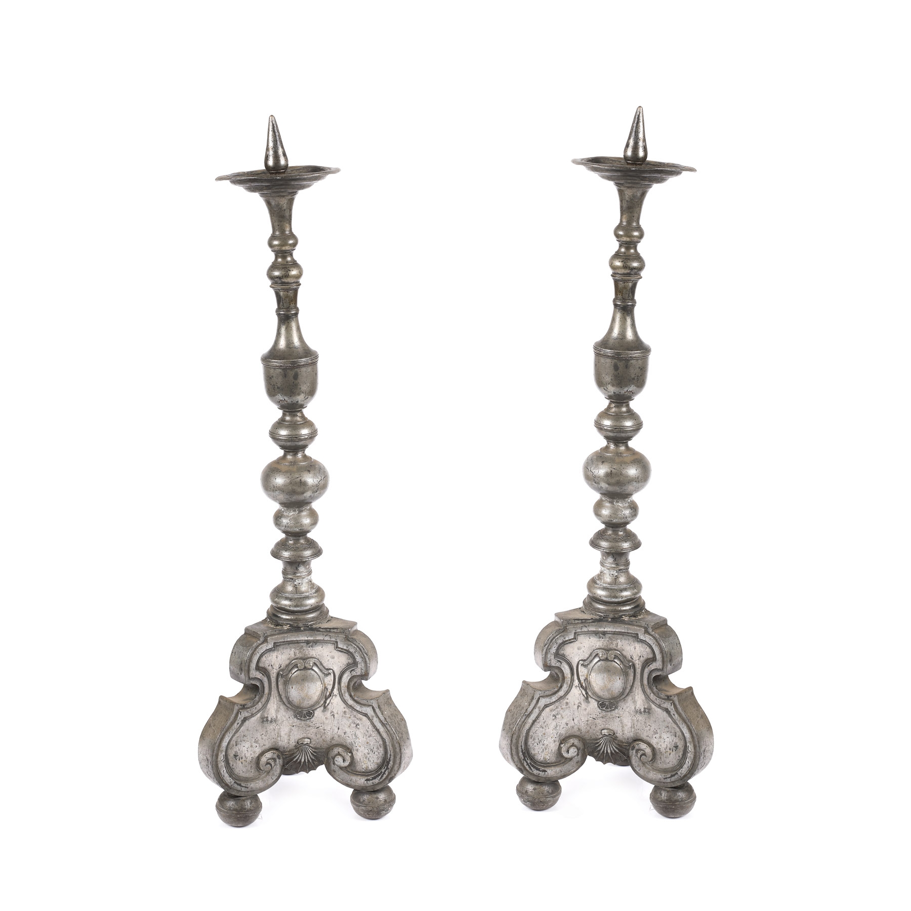 91. Pereche de sfeșnice de podea, de inspirație Baroc, sec. XIX, provine din colecţia Lucrezia și Ion Pacea