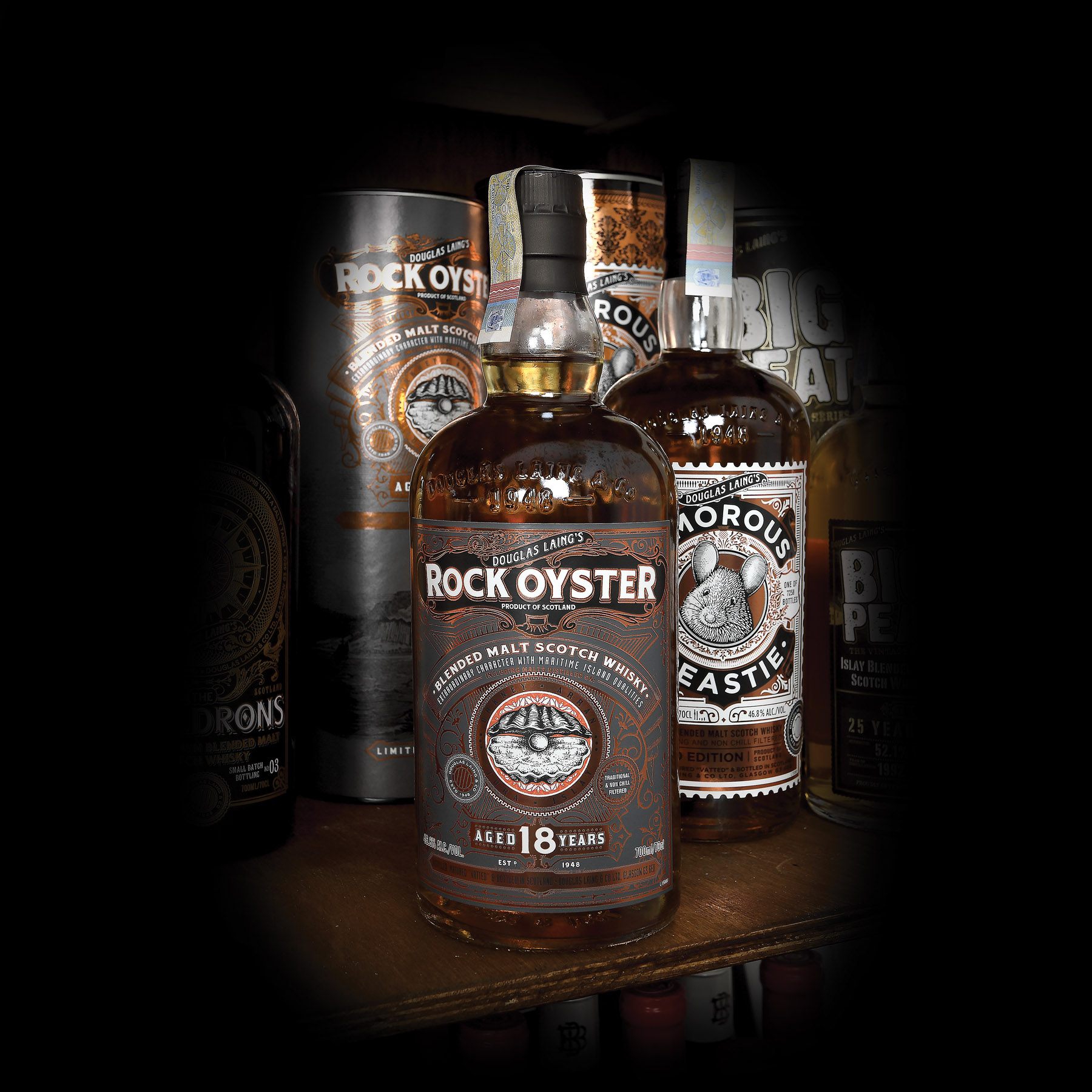O ediție limitată, de 18 ani, de blended malt, Rock Oyster de la Douglas Laing, realizata exclusiv cu whisky-uri distilate pe Arran, Jura, Islay și Orkney.