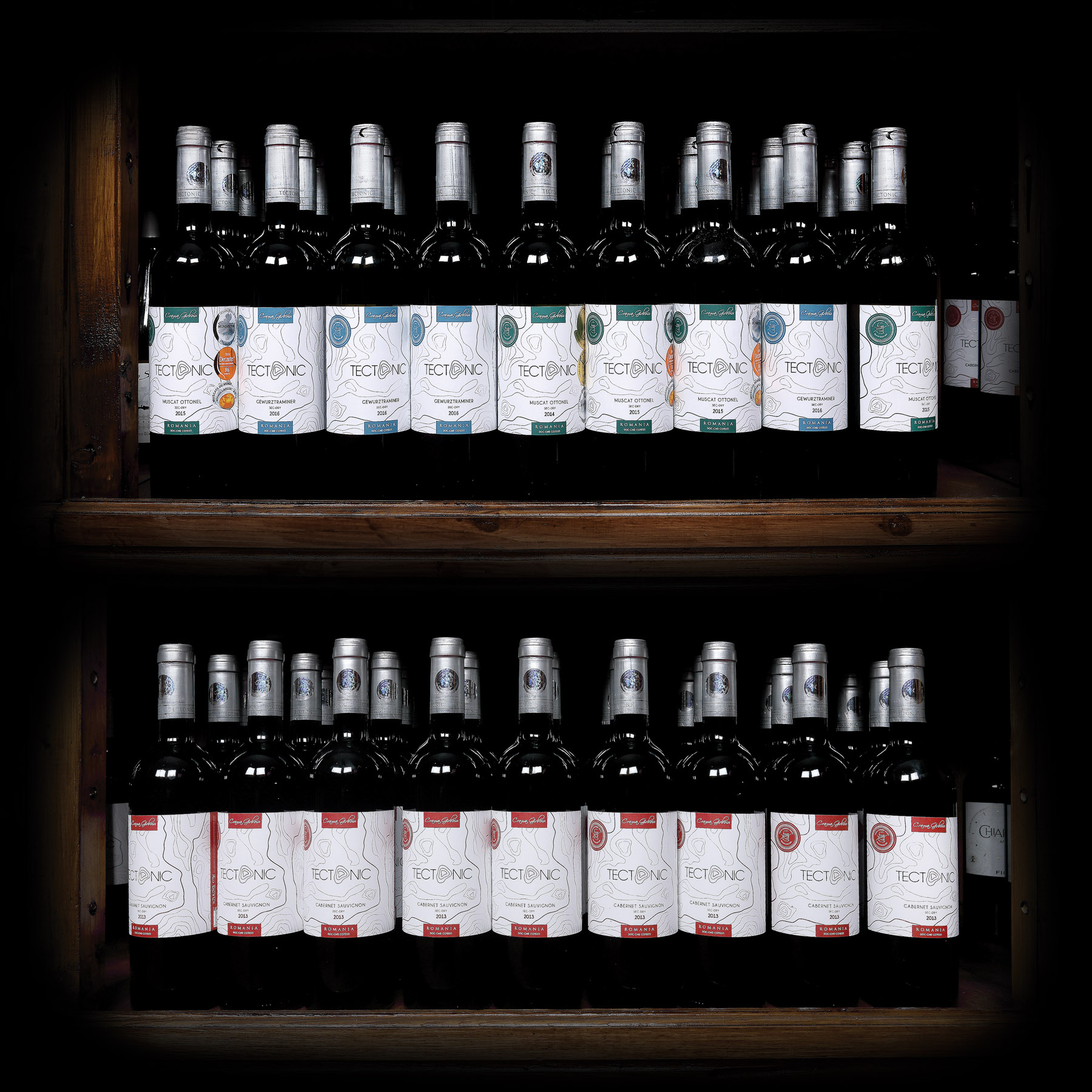 Tectonic Muscat Ottonel, alb, sec, 2015, 21st x 0,75 Decanter 2016 - 86 puncte Mundus Vini Medalie de Argsint 2016 Muscats du Monde Medalie de Argsint 2016 Tectonic Gewurztraminer, alb, sec, 2016, 24st x 0,75 Tectonic Cabernet Sauvignon, roșu, sec, 2015, 36st x 0,75