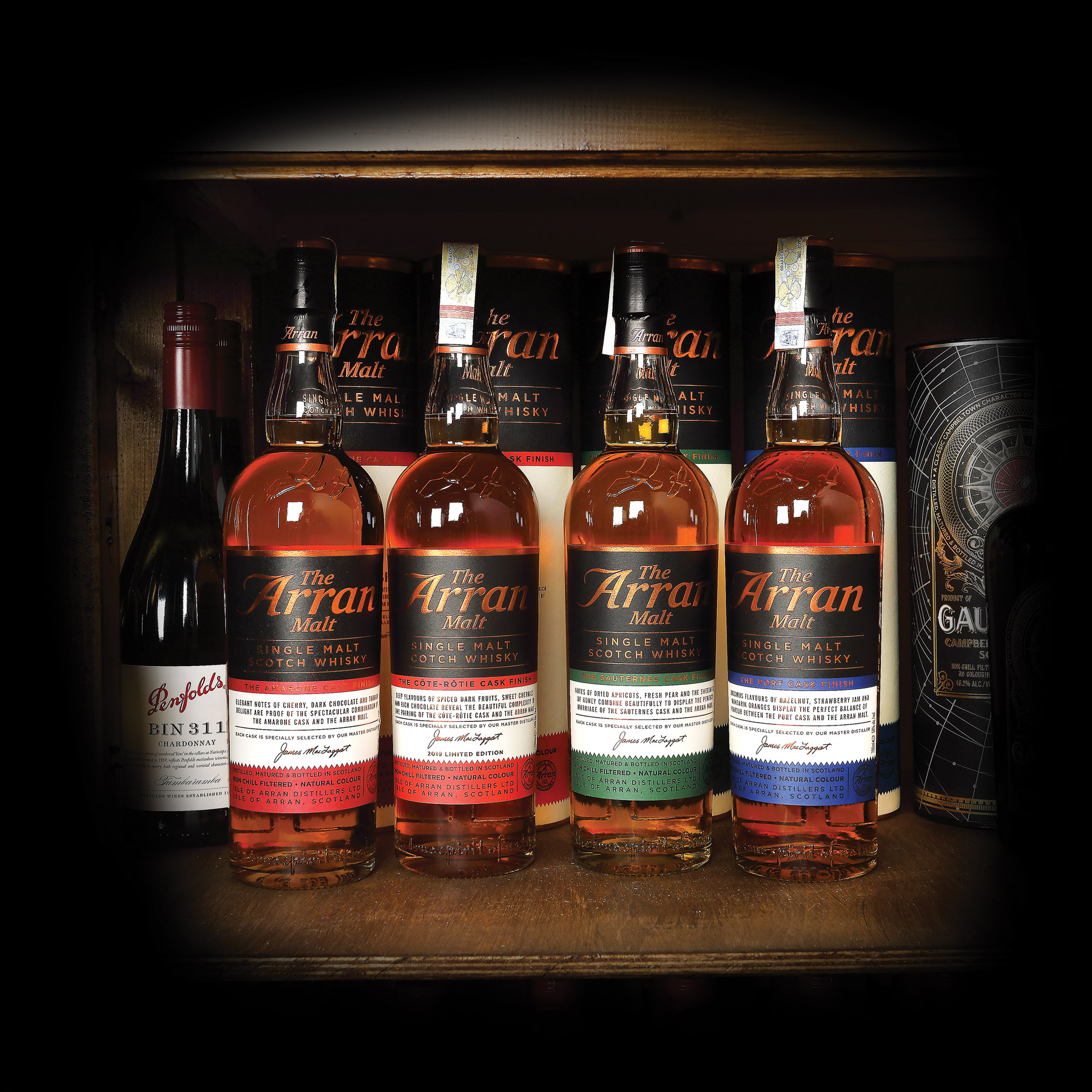 Arran Amarone Finish, 1st x 0,7l Arran Port Finish, 1st x 0,7l Arran Sauterns Finish, 1st x 0,7l Arran Cote Rotie Finish, 1st x 0,7l