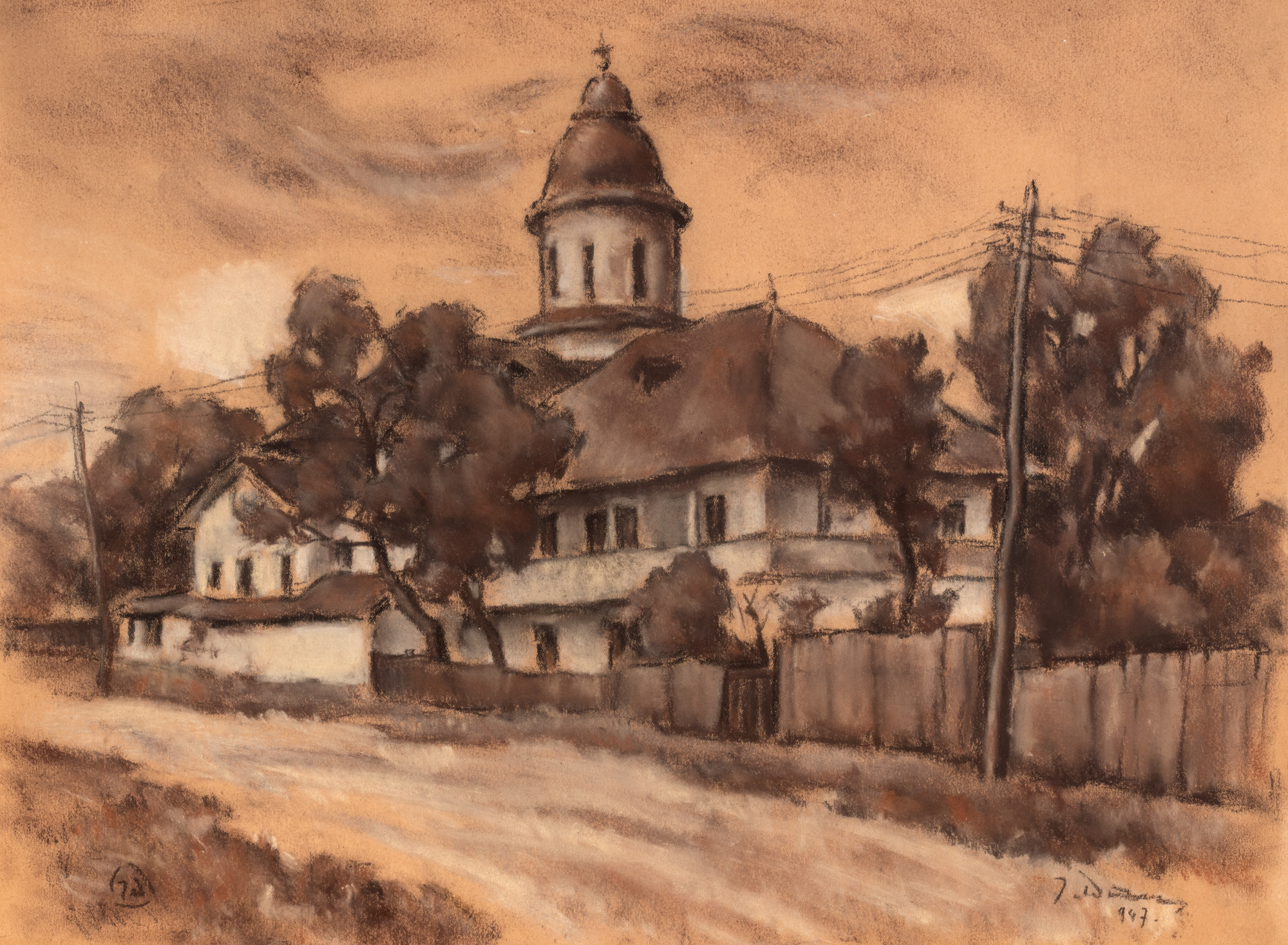 semnat și datat dreapta jos, în cărbune, "I. Dan, (19)47"