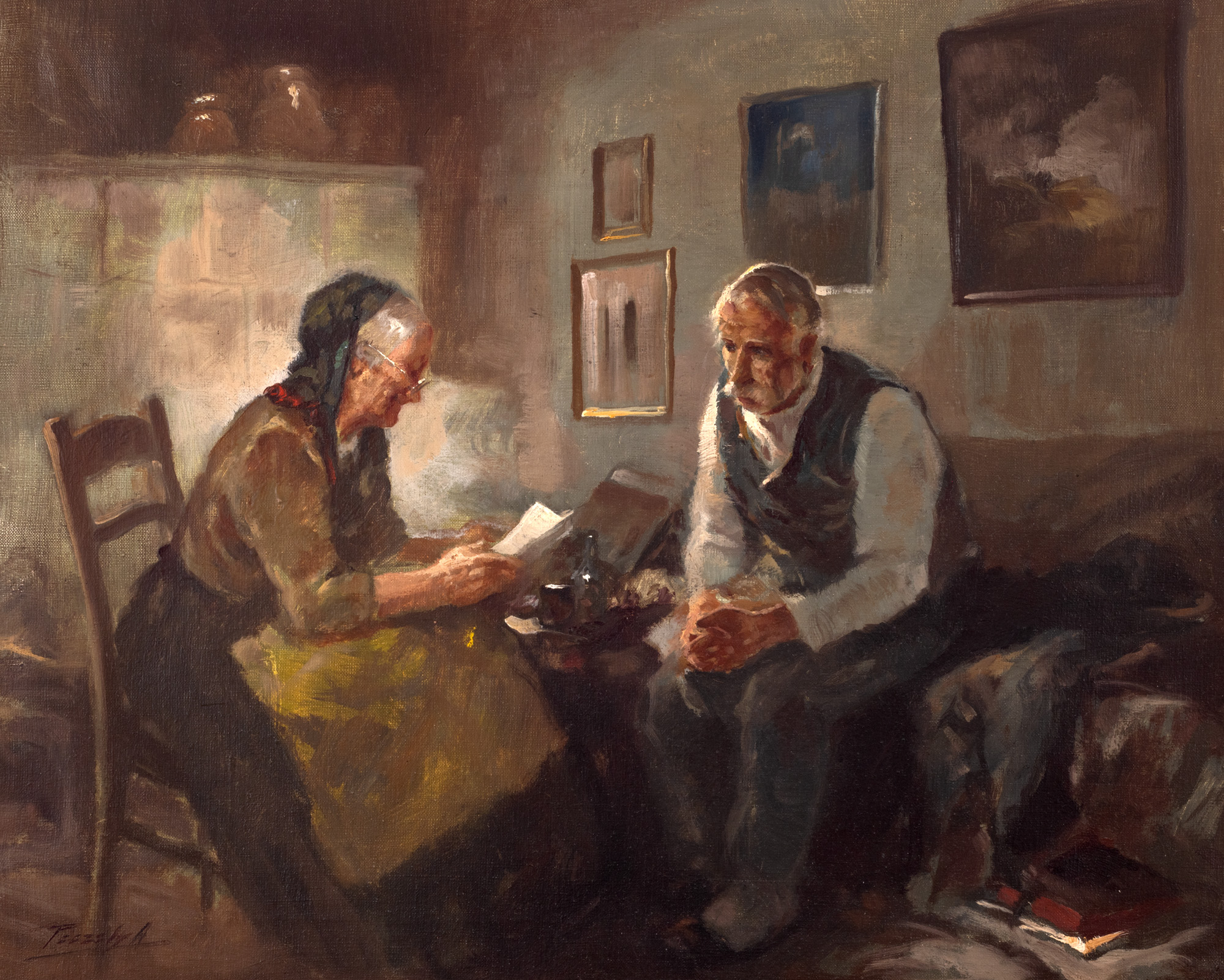 semnat stânga jos, cu roșu, ”Peczely. A”
