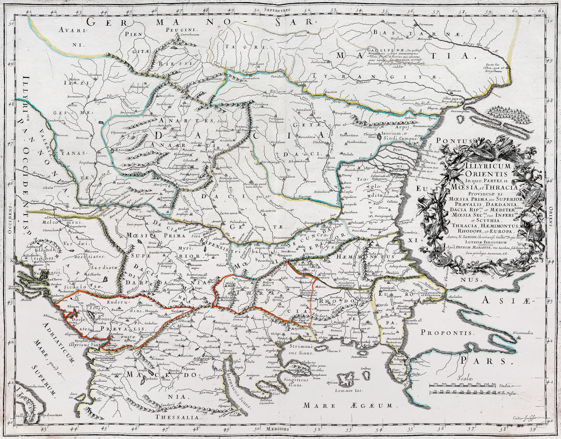 73. Hartă ”Illyricum Orientis”, de Nicolas Sanson (1600 – 1667), considerat a fi părintele cartografiei franceze, Padova, 1666