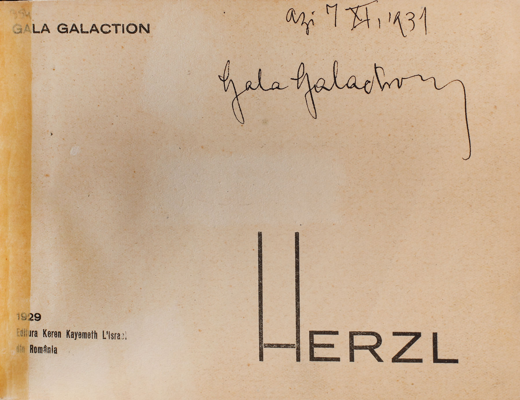 100. ”Herzl”, de Gala Galaction, București, 1929, cu semnătura olografă a scriitorului