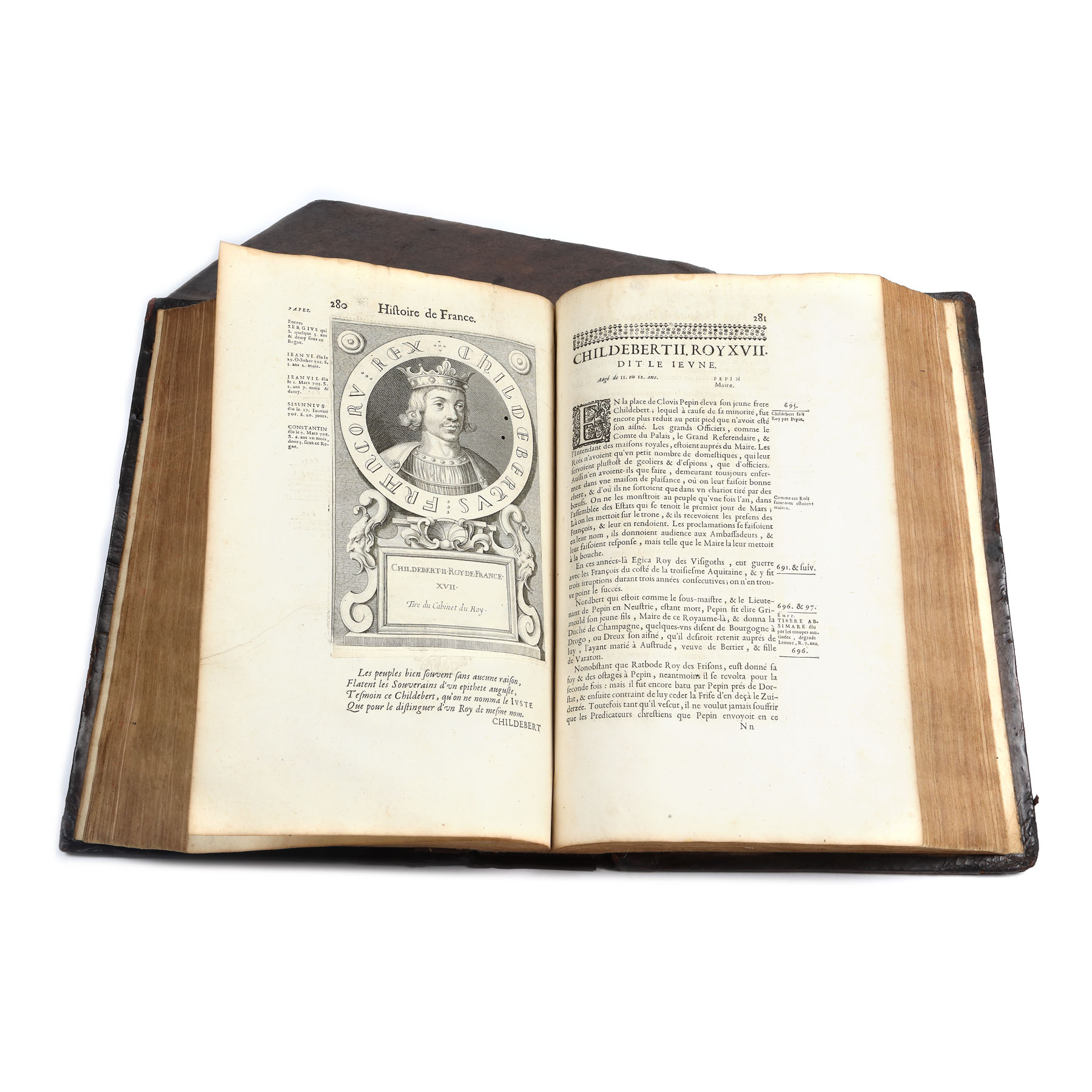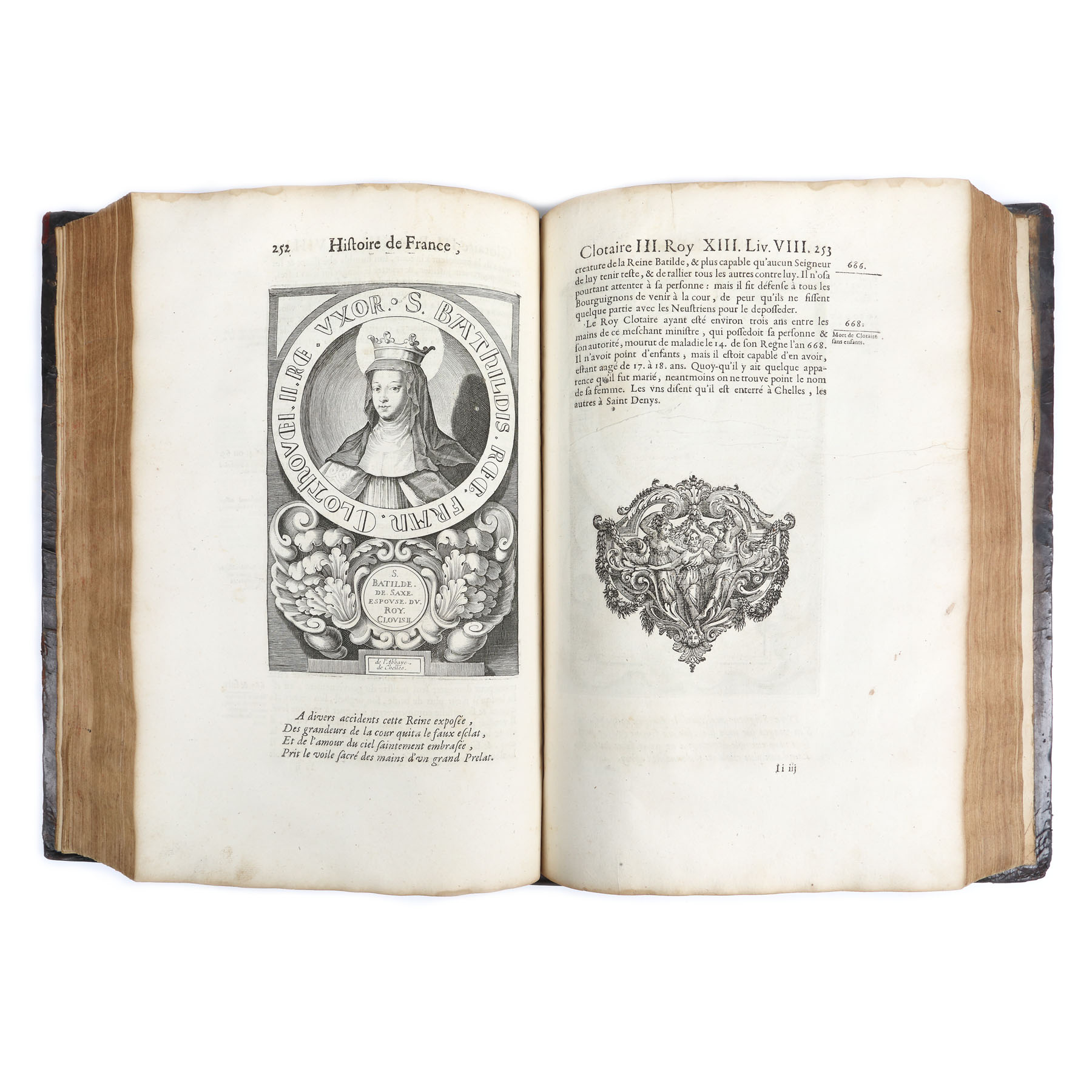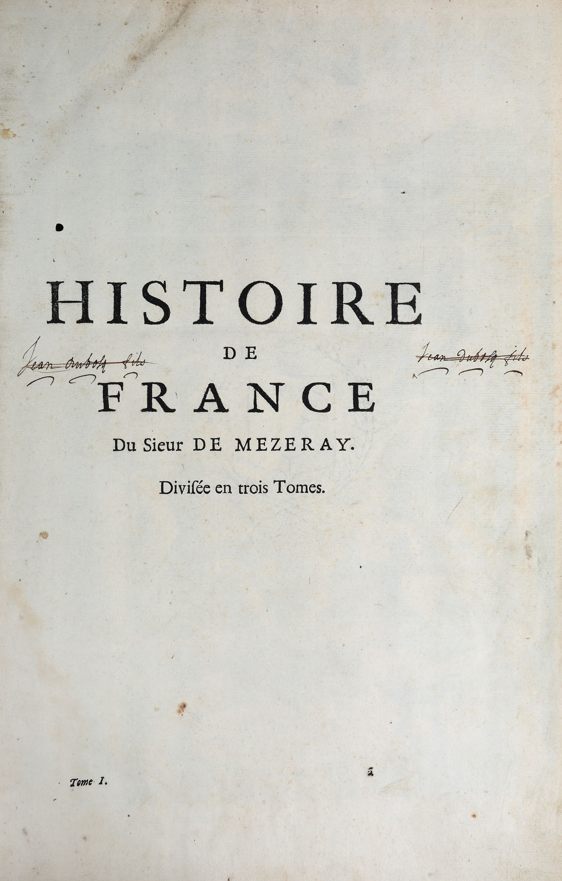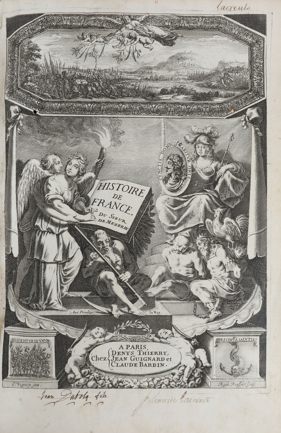 Realizată la Paris în editura condusă de ”Denies Thierry, Jean Guignard, Claude Barbin” în anul 1685. Format in-folio, volumul I zece file nenumerotate ce cuprind prefața autorului, privilegiul regal și un mesaj adresat Reginei Ana, care asigura regența Franței, 328 de pagini numerotate și alte 712 pagini privind primii regi ai Frantei; ultimile pagini cuprind tabla de materii și sunt 19 file nenumerotate. Conține numeroase gravuri reprezentând portrete ale regilor, realizate de C. Vrgnon și Rousselet și de Petrus Daret în anul 1643, la care se adaugă frontispicii, inițiale și vignete finale bogat decorate cu elemente vegetale. Legătura este din piele, pe tăblii de lemn cu restaurări artizanale, în secolul XIX. Volumul II are două file nenumerotate, 1218 pagini numerotate. Prezintă gravuri cu portrete de regi și regine. Imagini cu medalioane dedicate regilor Franței. Același tip de legătura. Volumul III are două file nenumerotate, 1386 pagini numerotate. Prezintă gravuri cu portrete de regi și regine. Legătura de carte în aceleași condiții, blocul de carte păstrându-se în condiții bune.