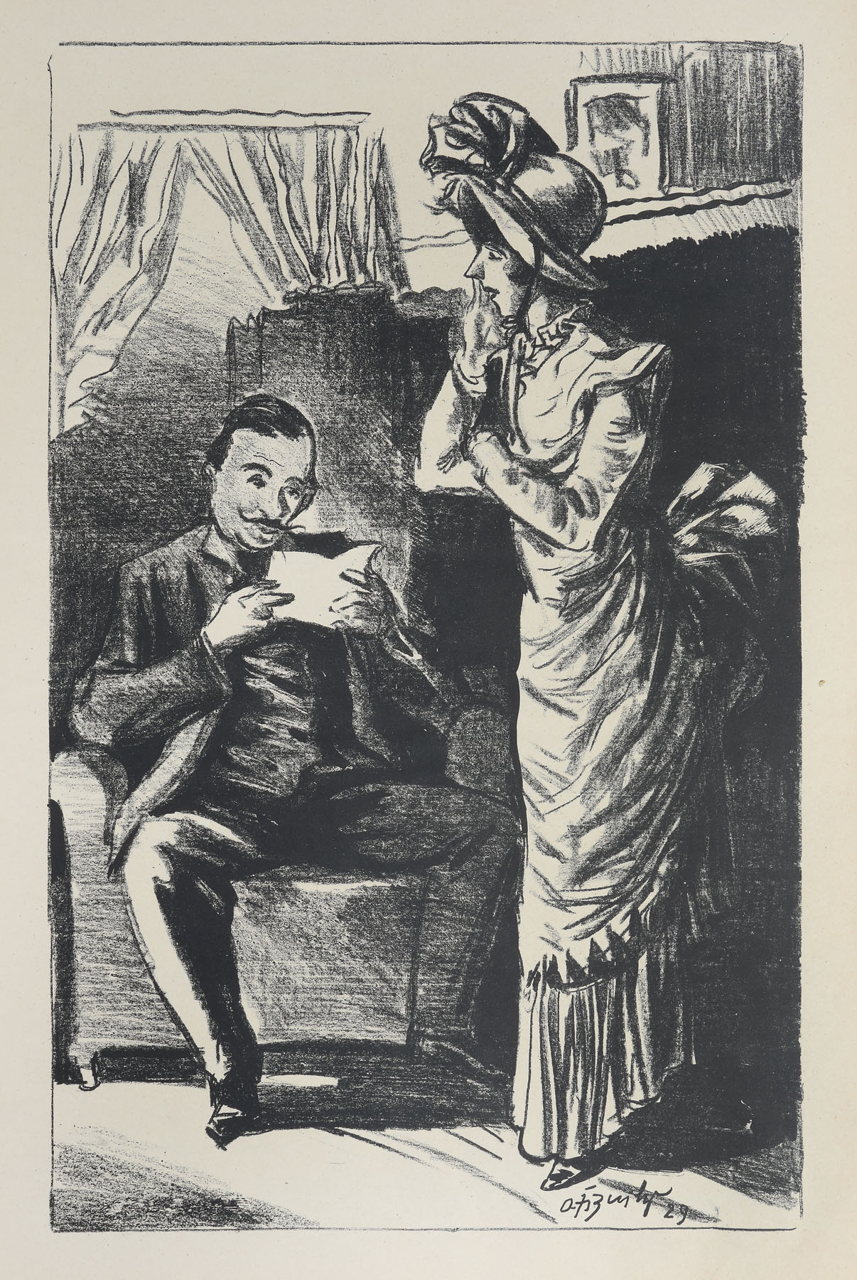 91. Lot format din două mape ”Noaptea Furtunoasă”, 1931 și ”Scrisoarea Pierdută”, după Ion Luca Caragiale, cu 26 de litografii și dedicațiile artistului către avocatul Hurmuz Aznavorian