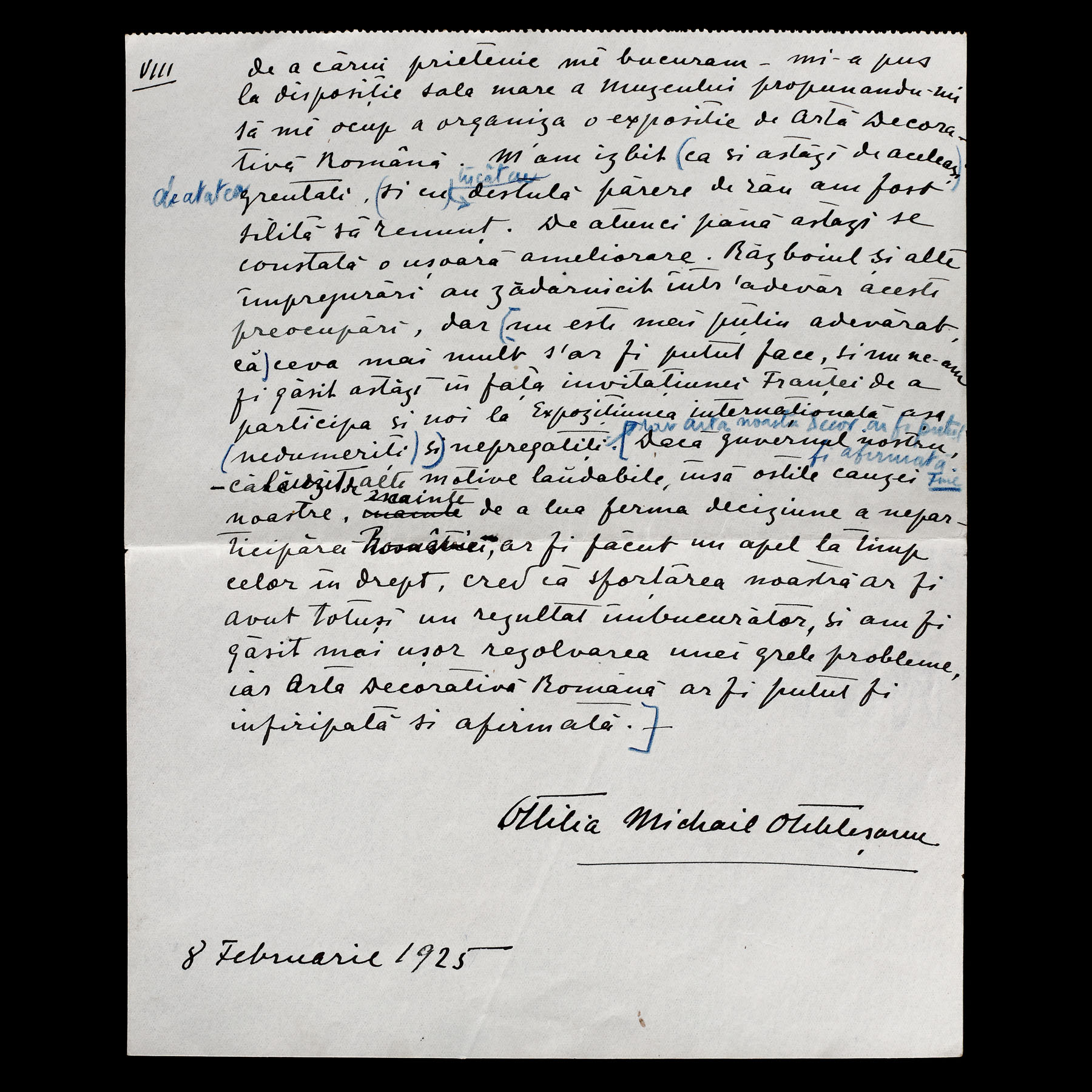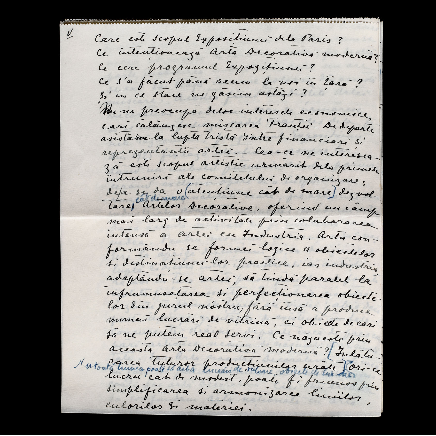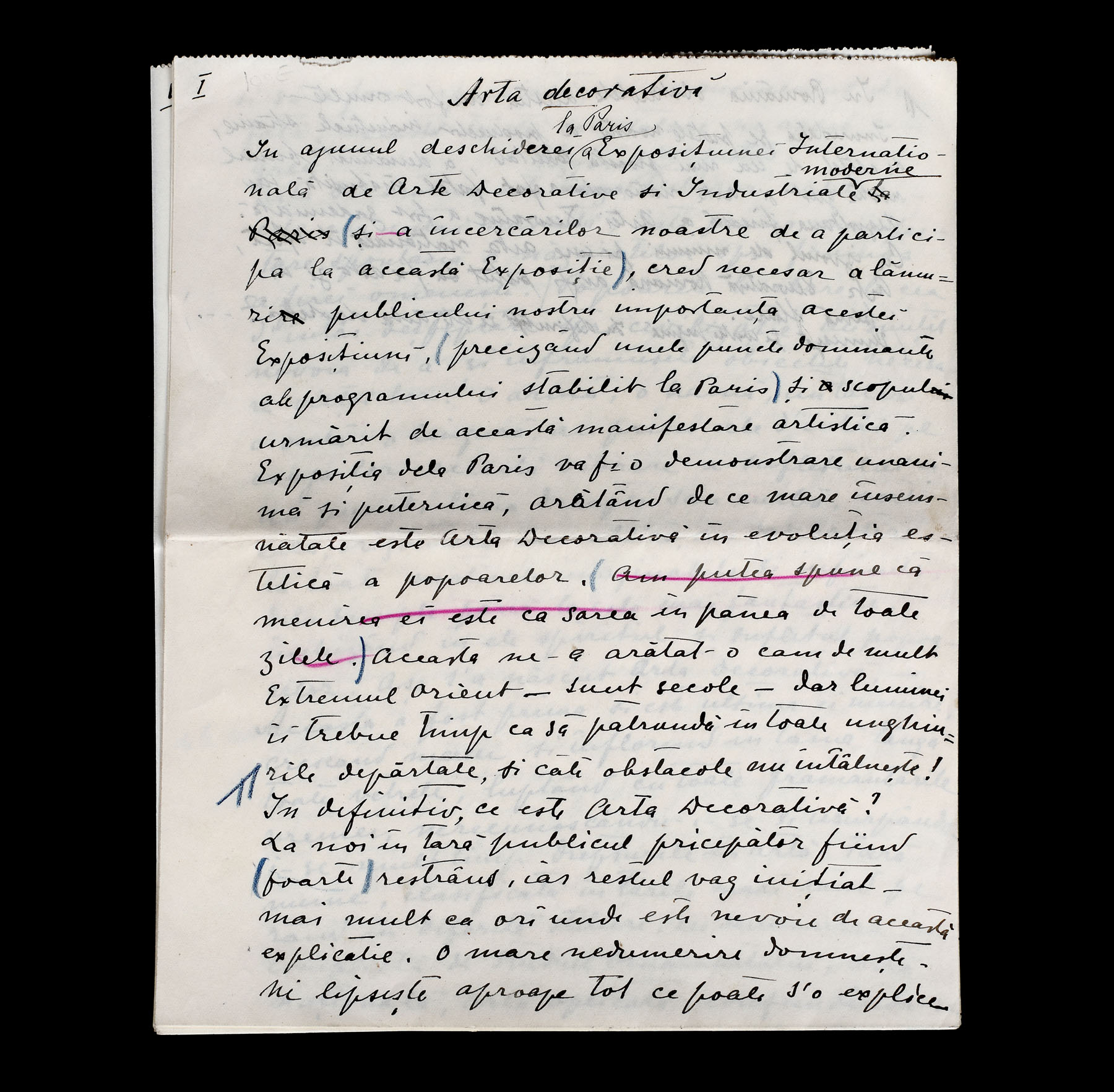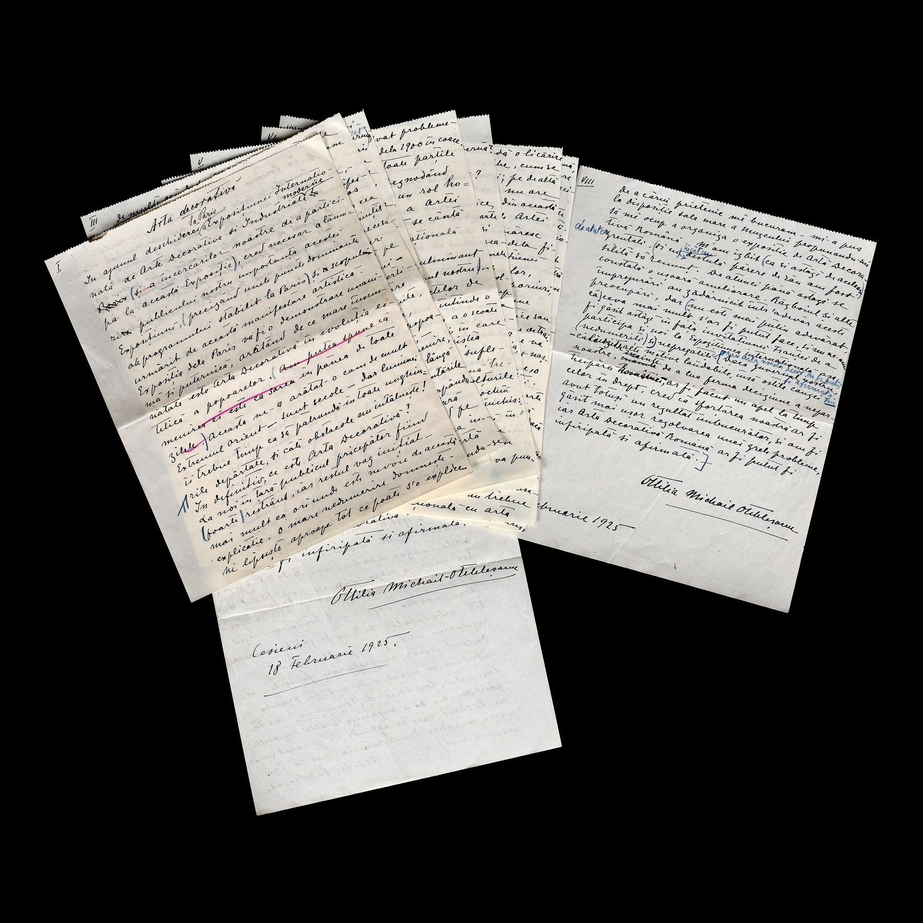 52. Manuscris ”Arta decorativă”, de Ottilia Michail-Oteteleșanu, 18 februarie 1925 (9 file)