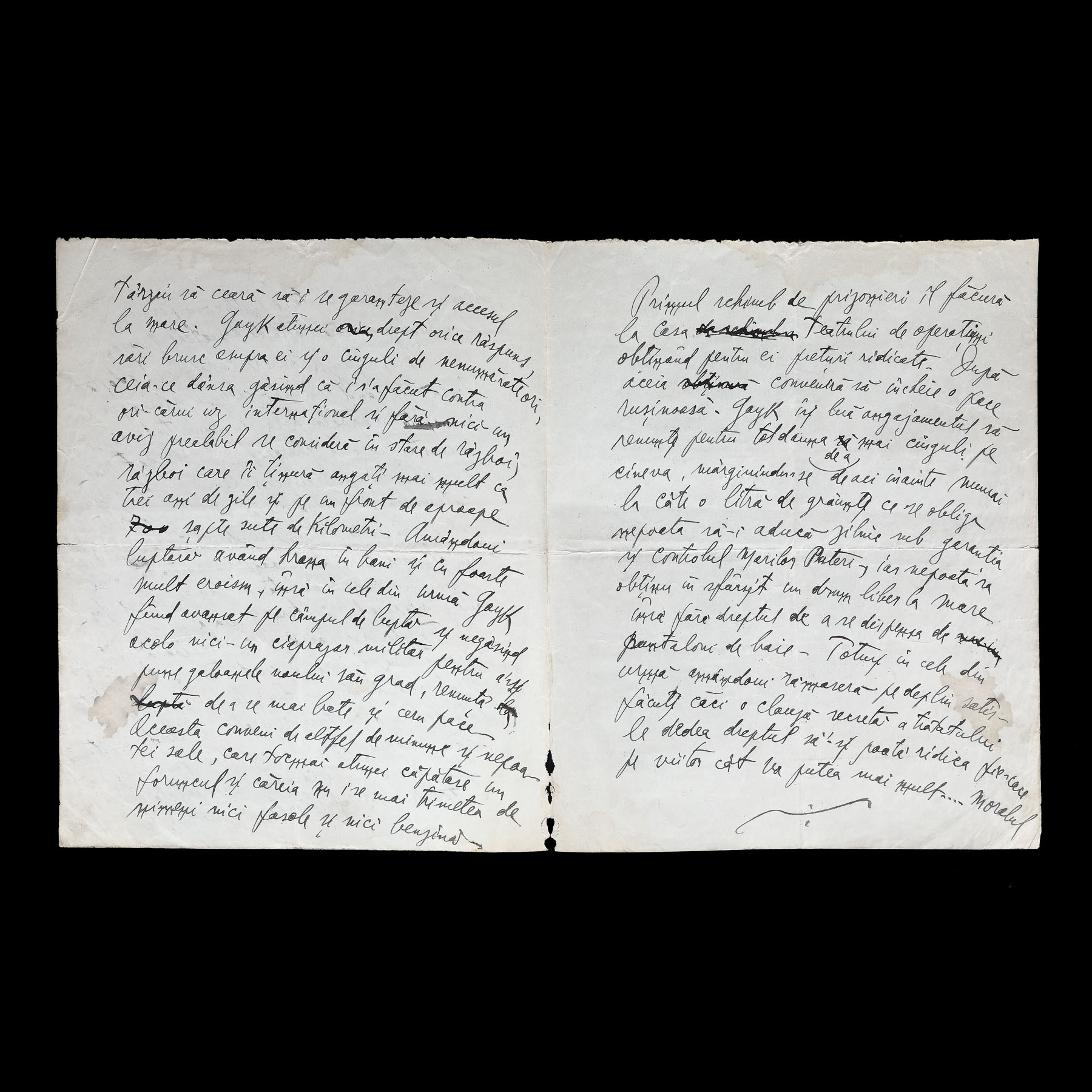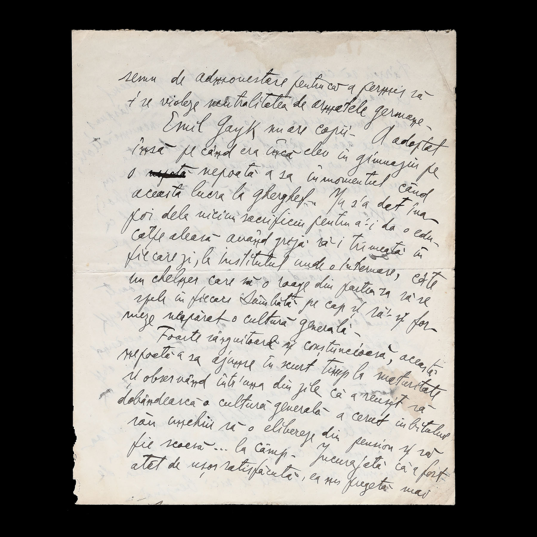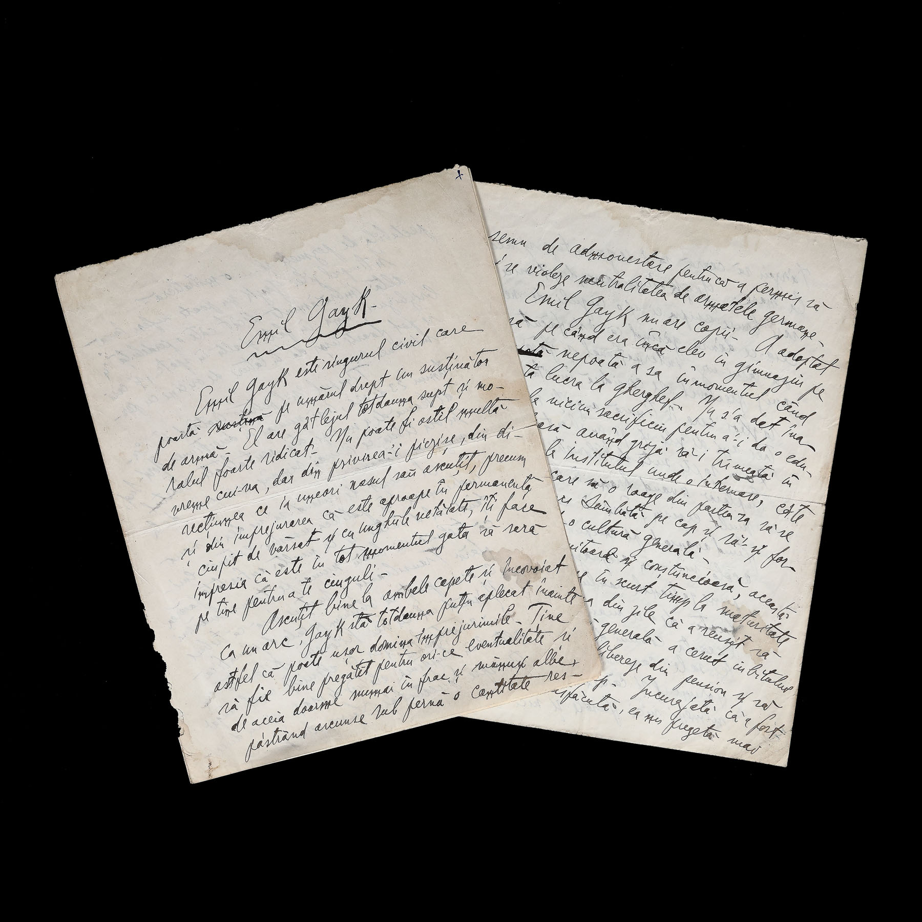 54. Manuscrisul povestirii absurde "Emil Gayk", de Urmuz, provine din arhiva poetului avangardist Sașa Pană, alcătuitorul primei ediții a scrierilor urmuziene, publicat în ”Urmuz”, editura UNU, 1930 (4 file)
