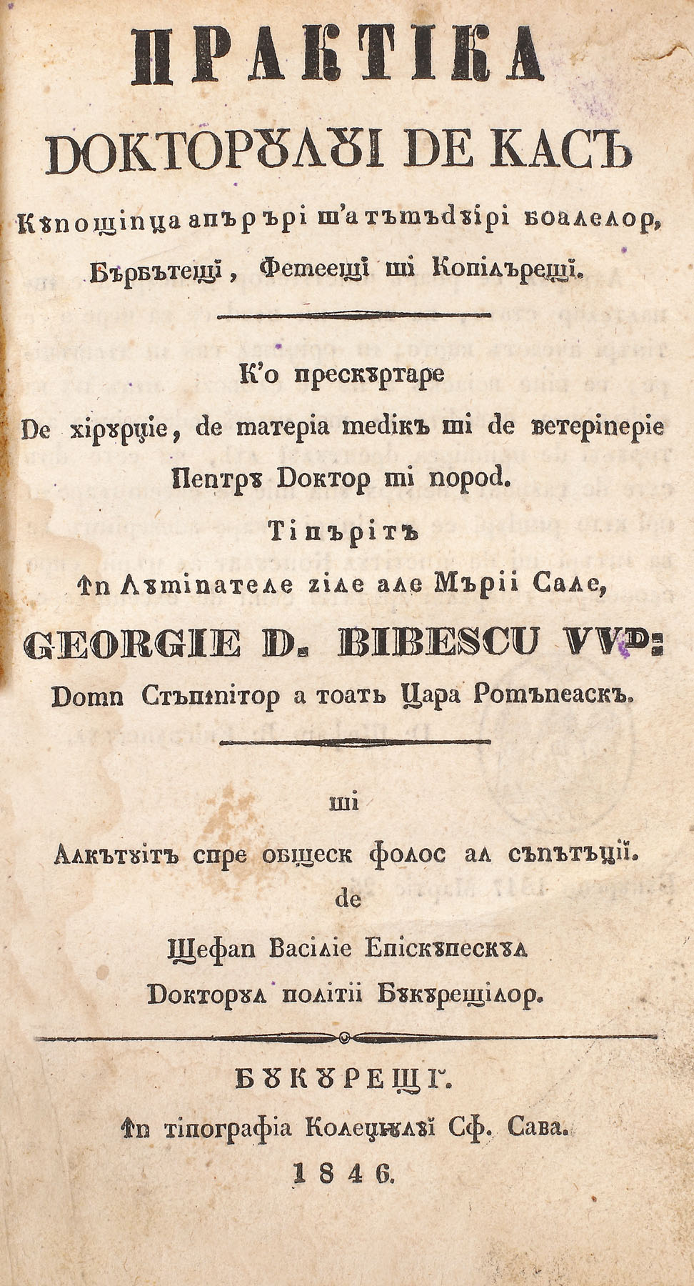 134. ”Practica doctorului de casă”, de Ștefan Vasilie Episcupescu, ediție princeps, București, 1846, prima lucrare medicală românească dedicată medicinii generale